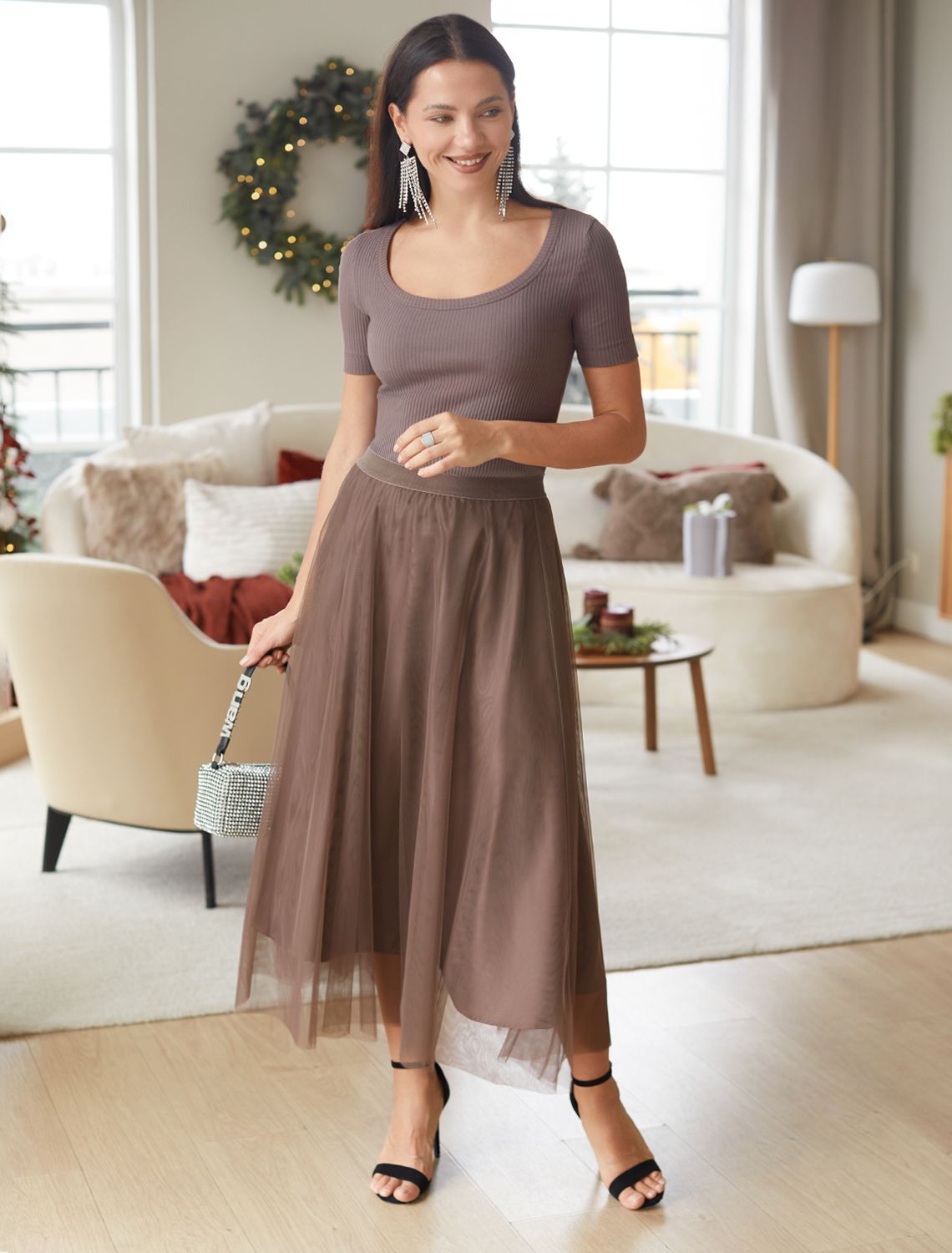 Футболка из трикотажа в широкий рубчик D49.066 кофейный