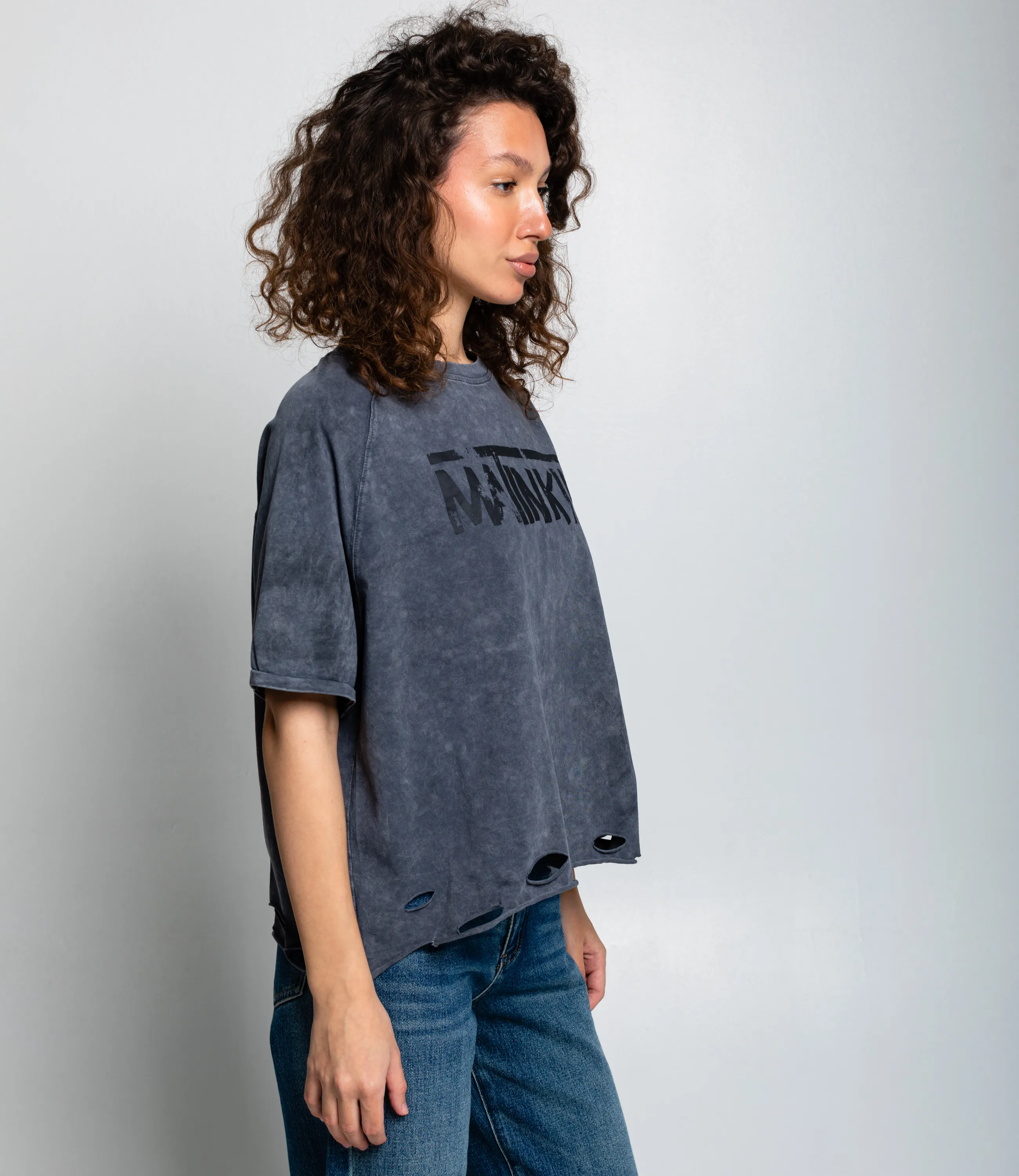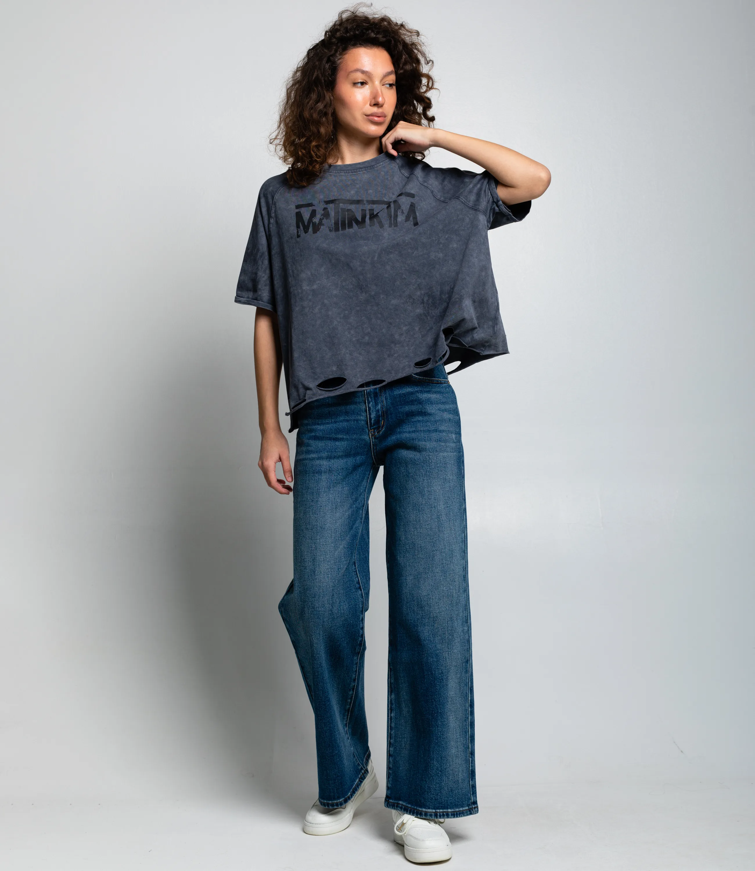 Эта футболка — прекрасный выбор для вашего магазина, предлагая стильный и универсальный дизайн, который станет отличным дополнением к гардеробу ваших клиентов. Футболка свободного, оверсайз-кроя с короткими рукавами и круглым вырезом. На груди размещён крупный принт с надписью в стиле «потёртого» шрифта, придающий изделию неформальный, дерзкий характер. Низ футболки оформлен с декоративными разрезами, создающими эффект небрежности. Выполненная из 80% хлопок, 20% полиэстер, футболка обеспечивает отличное качество и приятные тактильные ощущения. Независимо от сезона, она станет любимым элементом в гардеробе ваших клиентов. На странице сайта доступна таблица размеров, что позволит вашим покупателям легко найти подходящий вариант. Установленная цена делает эту футболку доступной для широкой аудитории, что обеспечит вам высокий уровень продаж.