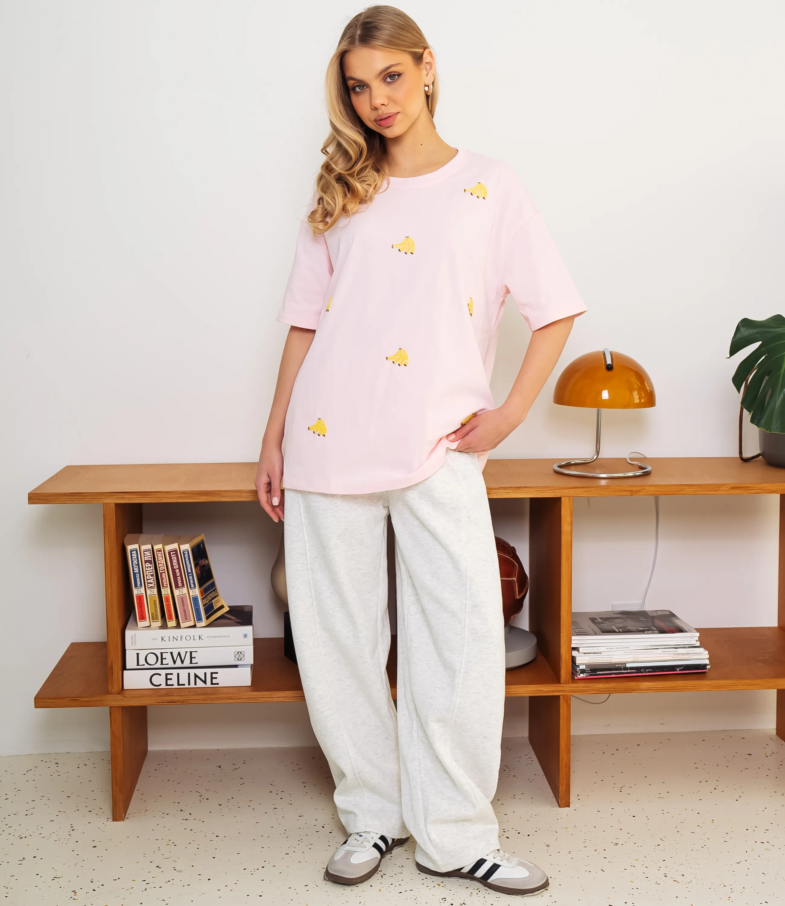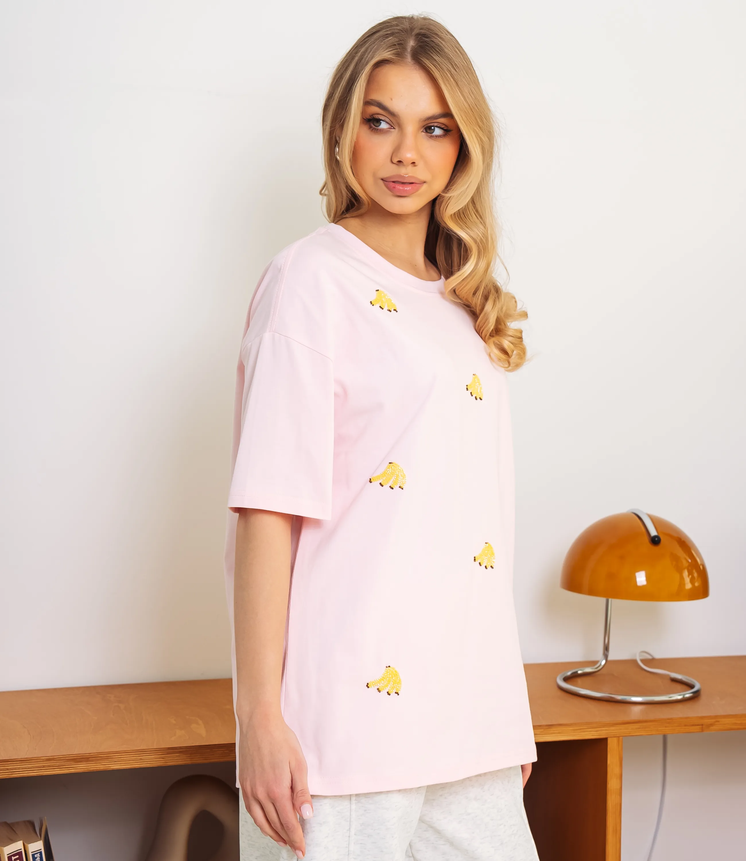 Эта футболка — прекрасный выбор для вашего магазина, предлагая стильный и универсальный дизайн, который станет отличным дополнением к гардеробу ваших клиентов. Футболка свободного прямого кроя из мягкого трикотажа с круглым вырезом, удлинённой спинкой, опущенной линией плеча и короткими рукавами, аккуратно подшитыми двойной строчкой, без застёжек, с мелким повторяющимся высшитым бисером рисунком в виде мини-бананов. Выполненная из 95% хлопок и 5% спандекс, футболка обеспечивает отличное качество и приятные тактильные ощущения. Независимо от сезона, она станет любимым элементом в гардеробе ваших клиентов. На странице сайта доступна таблица размеров, что позволит вашим покупателям легко найти подходящий вариант. Установленная цена делает эту футболку доступной для широкой аудитории, что обеспечит вам высокий уровень продаж.