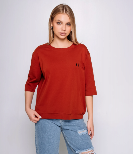 Футболка - это вещь, которая выделяет и подчеркивает уникальность каждой представительницы прекрасного пола. Футболка выполнена из мягкой, плотной трикотажной ткани с матовой поверхностью, имеет классический круглый вырез горловины с аккуратно пришитой резинкой-обтачкой, плечевые швы слегка опущены для свободной посадки, рукава средней длины до локтя с прямым срезом и обычной посадкой по руке, силуэт прямой и слегка удлинённый, свободно облегающий корпус без выраженной талии, по передней части на верхней левой части вшита небольшая тонкая нашивка. Изделие из 65% хлопок и 30% полиэстера, и 5% эластан сохранит свою первоначальную привлекательность даже после многих стирок. Вы будете его носить с большим удовольствием. Обратите внимание на цвет - он является насыщенным и полностью соответствует фотографии на сайте. Чтобы вы не сомневались в размере, мы предоставили на странице таблицу. Воспользовавшись ею, вы сможете сами сделать мерки и убедиться. Установленная нами цена является доступной и адекватной. Подарите себе удовольствие быть элегантной и неповторимой с нашей футболкой!