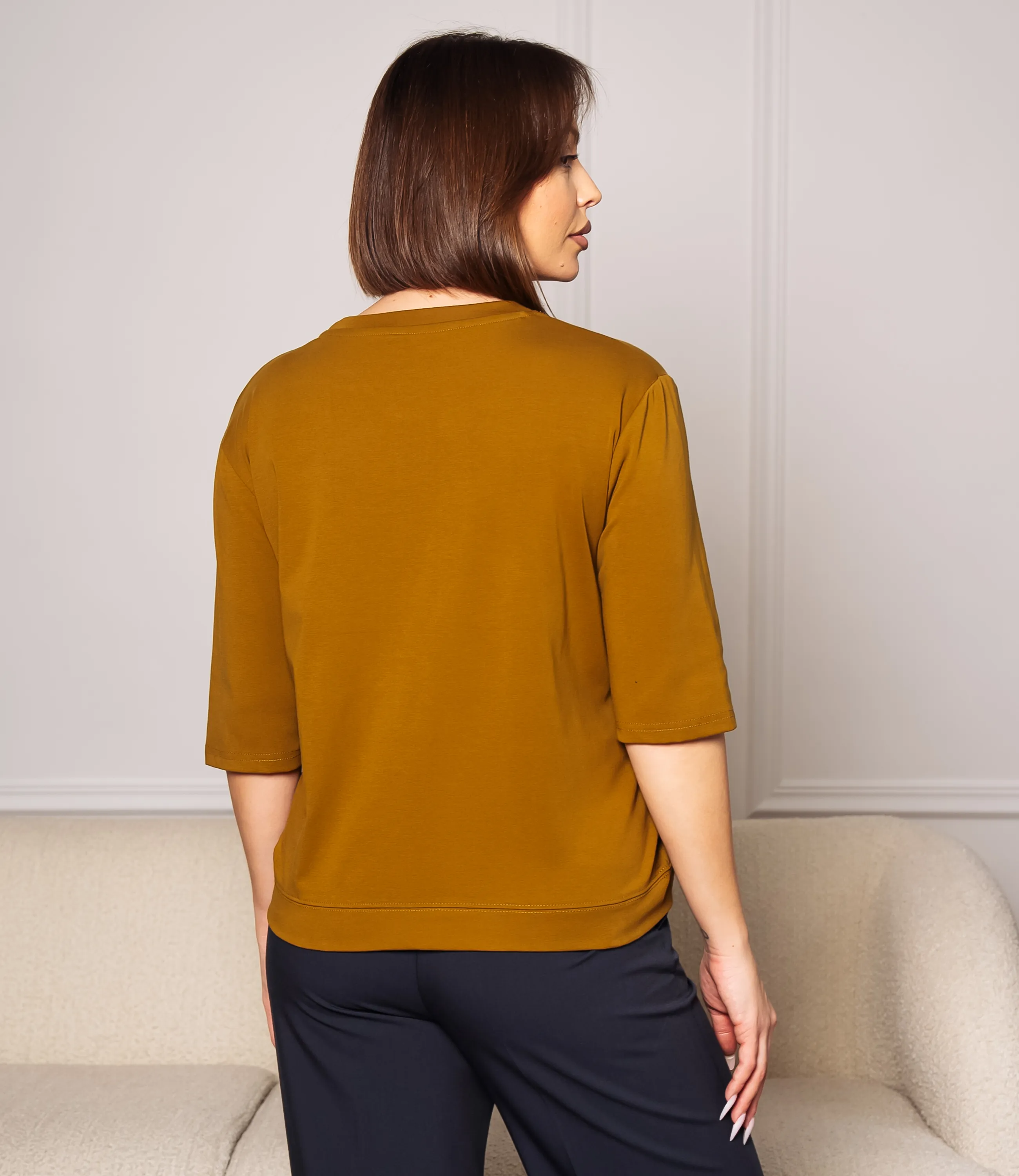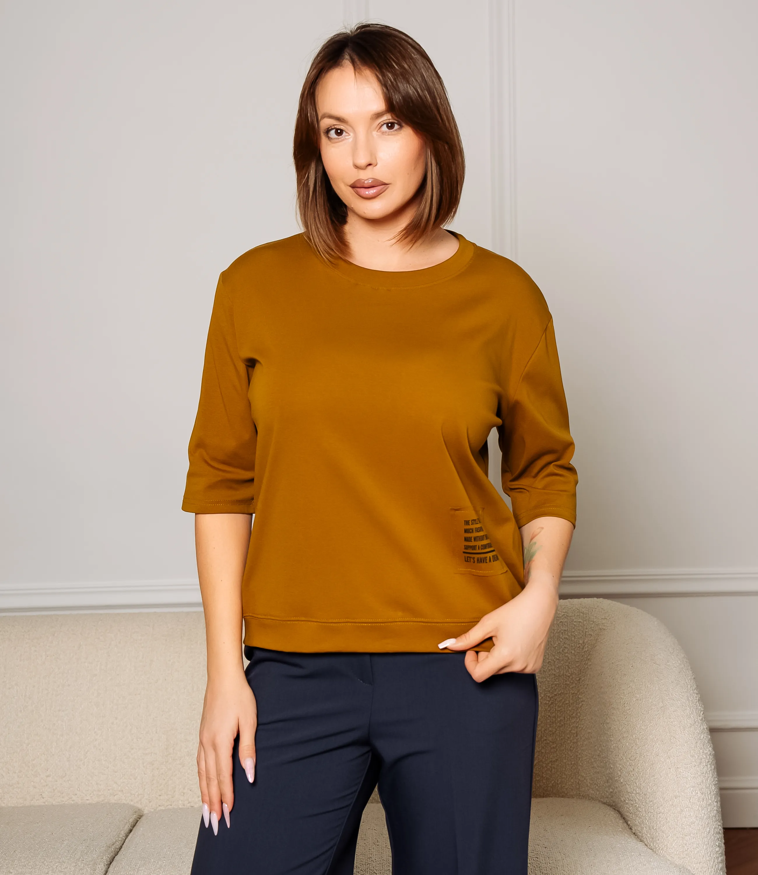 Футболка - это вещь, которая выделяет и подчеркивает уникальность каждой представительницы прекрасного пола. Футболка выполнена из мягкой, плотной трикотажной ткани с матовой поверхностью, имеет классический круглый вырез горловины с аккуратно пришитой резинкой-обтачкой, плечевые швы слегка опущены для свободной посадки, рукава средней длины до локтя с прямым срезом и обычной посадкой по руке, силуэт прямой и слегка удлинённый, свободно облегающий корпус без выраженной талии. Изделие из 65% хлопок и 35% полиэстера сохранит свою первоначальную привлекательность даже после многих стирок. Вы будете его носить с большим удовольствием. Обратите внимание на цвет - он является насыщенным и полностью соответствует фотографии на сайте. Чтобы вы не сомневались в размере, мы предоставили на странице таблицу. Воспользовавшись ею, вы сможете сами сделать мерки и убедиться. Установленная нами цена является доступной и адекватной. Подарите себе удовольствие быть элегантной и неповторимой с нашей футболкой!