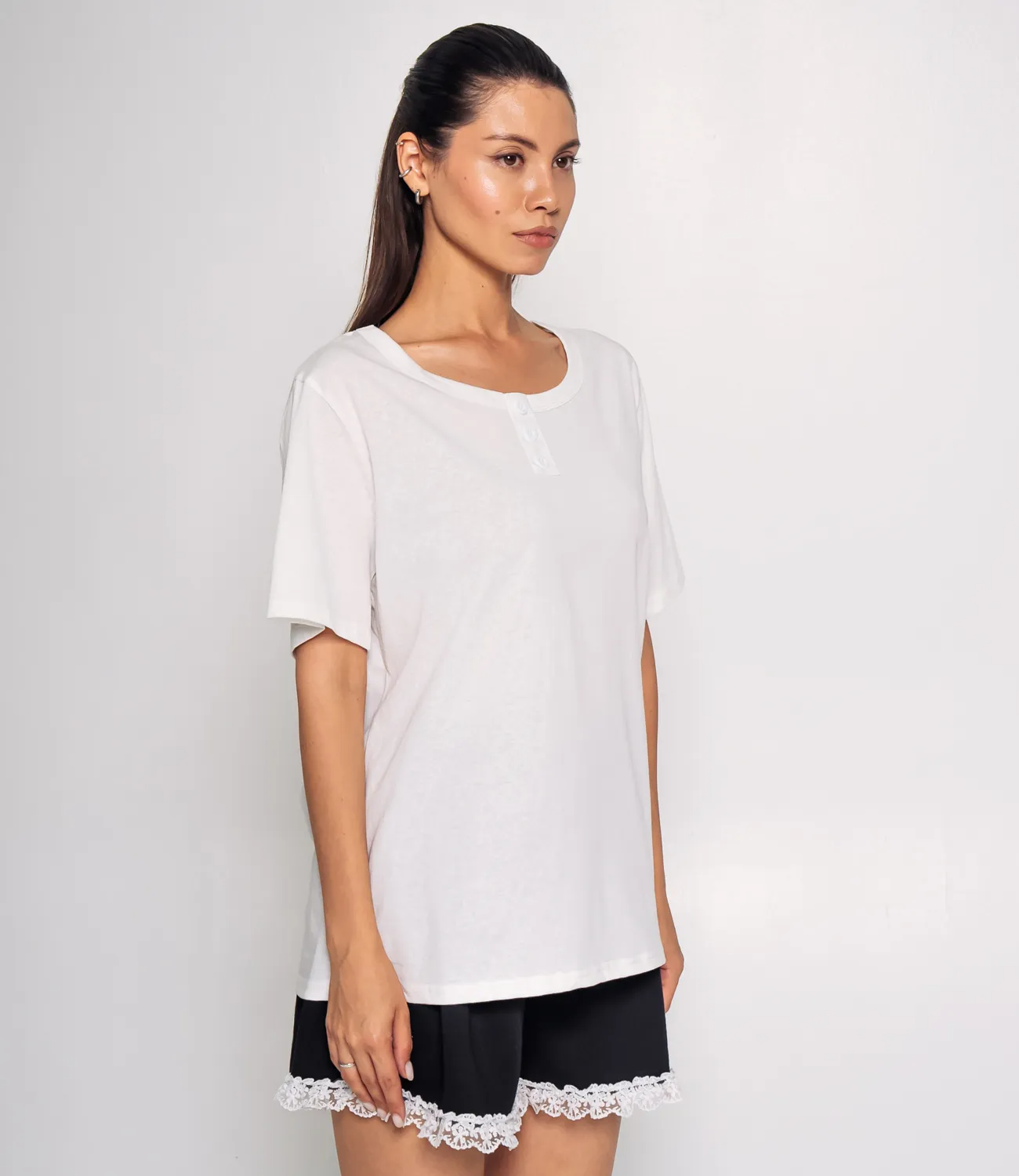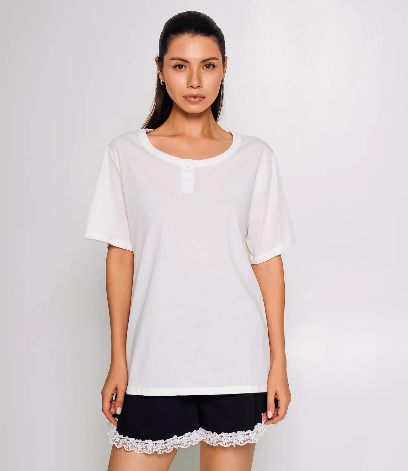 Футболка — это незаменимый элемент гардероба, который подчеркивает стиль и индивидуальность каждой девушки. Эта модель идеально подходит для тех, кто ценит комфорт и качество. Изготовленная из мягкого и приятного на ощупь материала, состоящего из 80% хлопка и 20% полиэстера, футболка обеспечивает превосходную воздухопроницаемость и легкость в носке, что делает её отличным выбором на каждый день. Свободный крой и круглая горловина с небольшой застежкой на три пуговицы посередине добавляют изделию стильный акцент и универсальность, позволяя легко комбинировать его с различными низами — от джинсов до юбок. Такой дизайн подходит как для повседневной носки, так и для создания более непринужденных образов. Футболка доступна в различных расцветках, что позволяет вашим покупателям выбирать именно тот вариант, который соответствует их стилю. Качество материала гарантирует, что футболка сохранит свою форму и яркость даже после многократных стирок. Мы предоставили на сайте таблицу размеров, чтобы ваши клиенты могли легко выбрать подходящий размер и быть уверенными в своем выборе. Предложенная нами цена делает эту футболку доступной для оптовых закупок, что является отличным предложением для ваших магазинов. Не упустите возможность предложить своим покупателям стильную и комфортную футболку, которая станет любимым предметом в их гардеробе и подчеркнет их уникальность! Рост модели 164, 83-61-89.