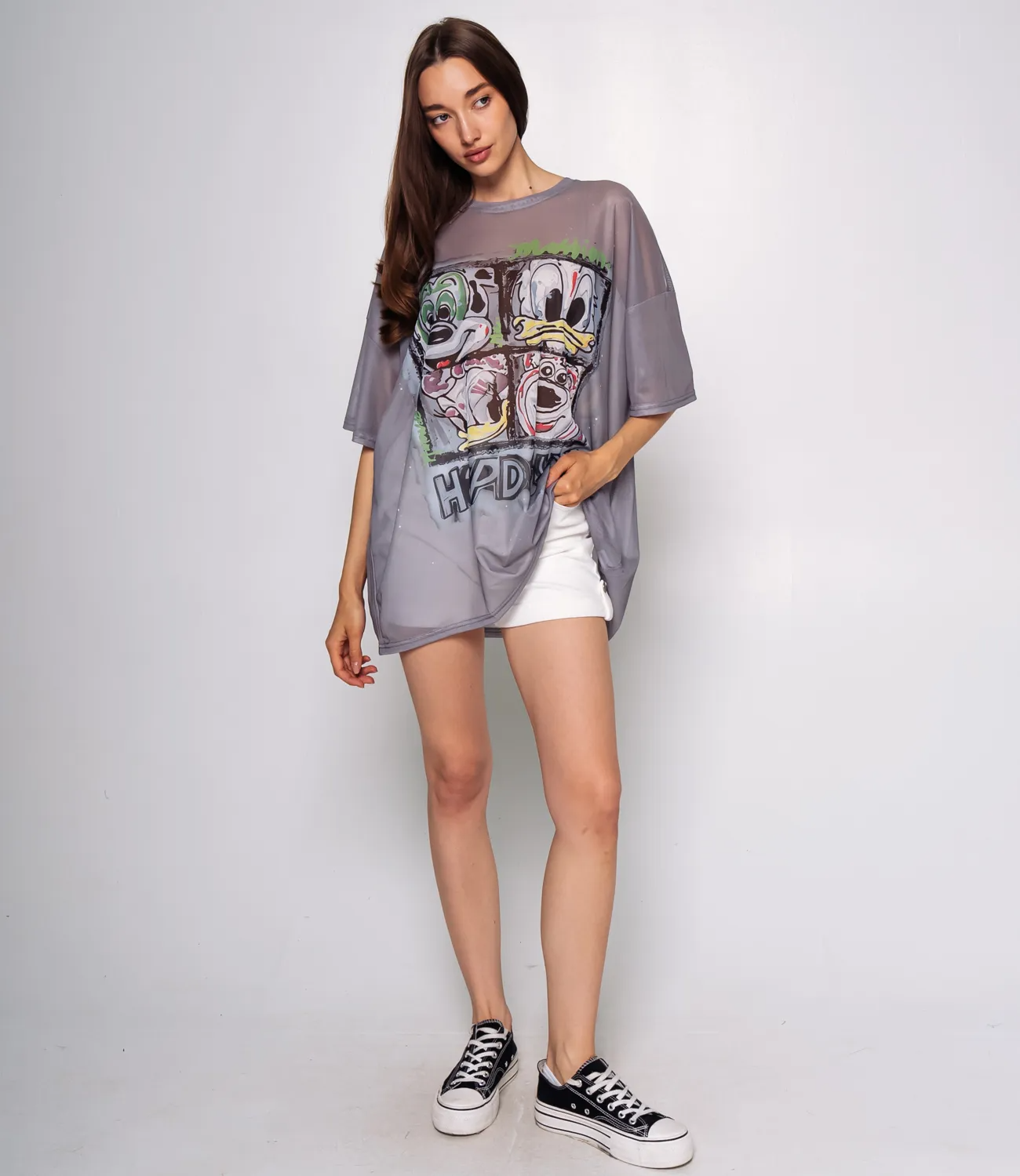 Футболка с ярким мультипликационным принтом — это не просто одежда, а настоящее выражение стиля и индивидуальности для каждой женщины и девушки. Эта модель отлично подойдет для создания молодежного и модного образа, который привлечет внимание и поднимет настроение в любое время года. Футболку выбирают покупательницы, которые ценят сочетание оригинальности и высокого качества при доступной стоимости. Изготовленная из высококачественного материала, состоящего из 95% полиэстера и 5% эластана, она отличается отличной воздухопроницаемостью и эластичностью. Такой состав обеспечивает комфорт и свободу движений, позволяя ощущать себя уверенно в любые моменты. Яркий принт, нарисованный в мультипликационном стиле, придаёт футболке уникальность и оригинальность, делающую её идеальной для повседневной носки или светских мероприятий. Обратите внимание на стильный и веселый дизайн, который станет отличным акцентом в любом наряде. Эта футболка прекрасно сочетается как с джинсами, так и с юбками, позволяя создавать разнообразные образы от casual до более экстравагантного стиля. Чтобы ваши клиенты могли легко выбрать подходящий размер, мы предоставили на сайте таблицу размеров. Это позволит каждому самостоятельно обмерить себя и убедиться в правильности выбора. Установленная нами цена является доступной для оптовых закупок, что делает данную модель отличным вариантом для вашего ассортимента. Не упустите возможность предложить своим покупателям эту яркую и стильную футболку с мультипликационным принтом, которая добавит радость и креатив в их гардероб! Рост модели 168 см., 85-63-92.