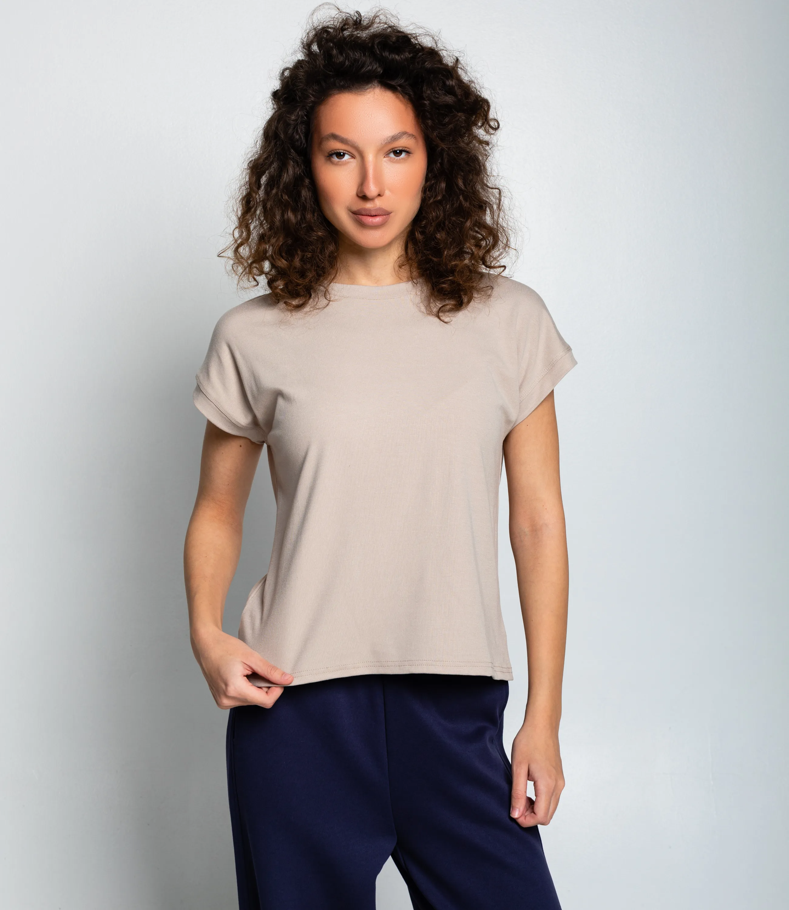 Футболка #КТ1016 (1)-1, бежево-серый