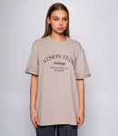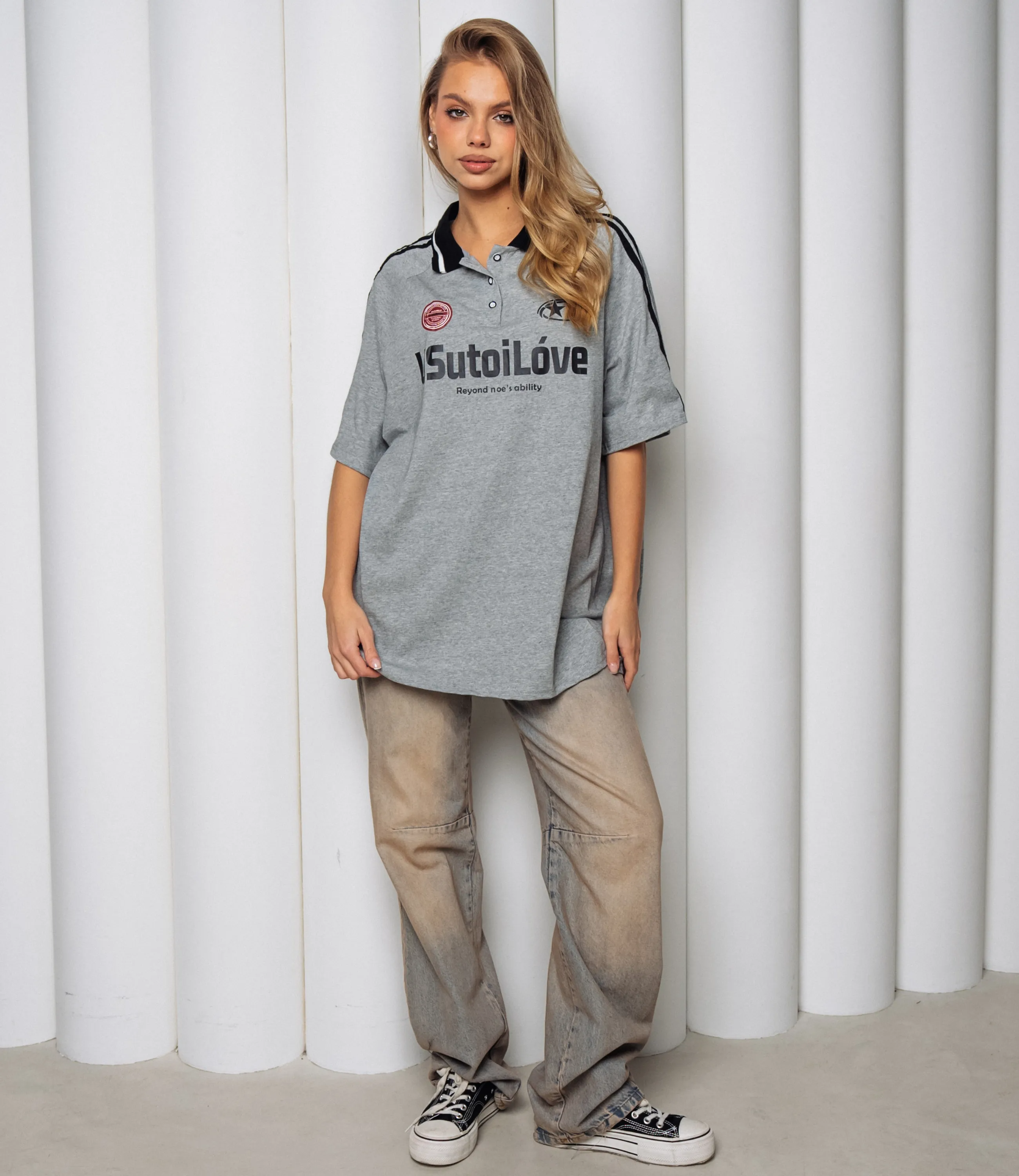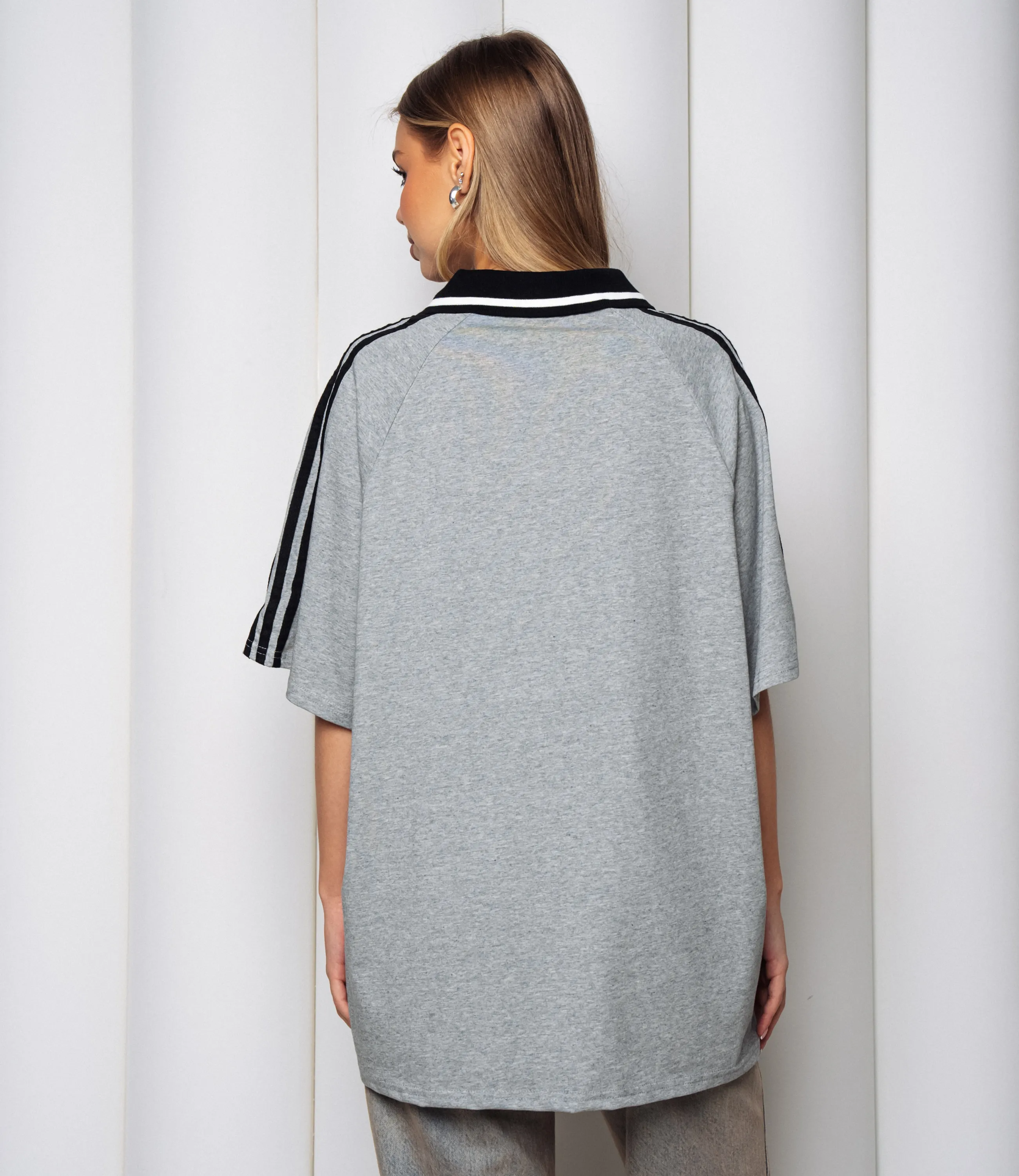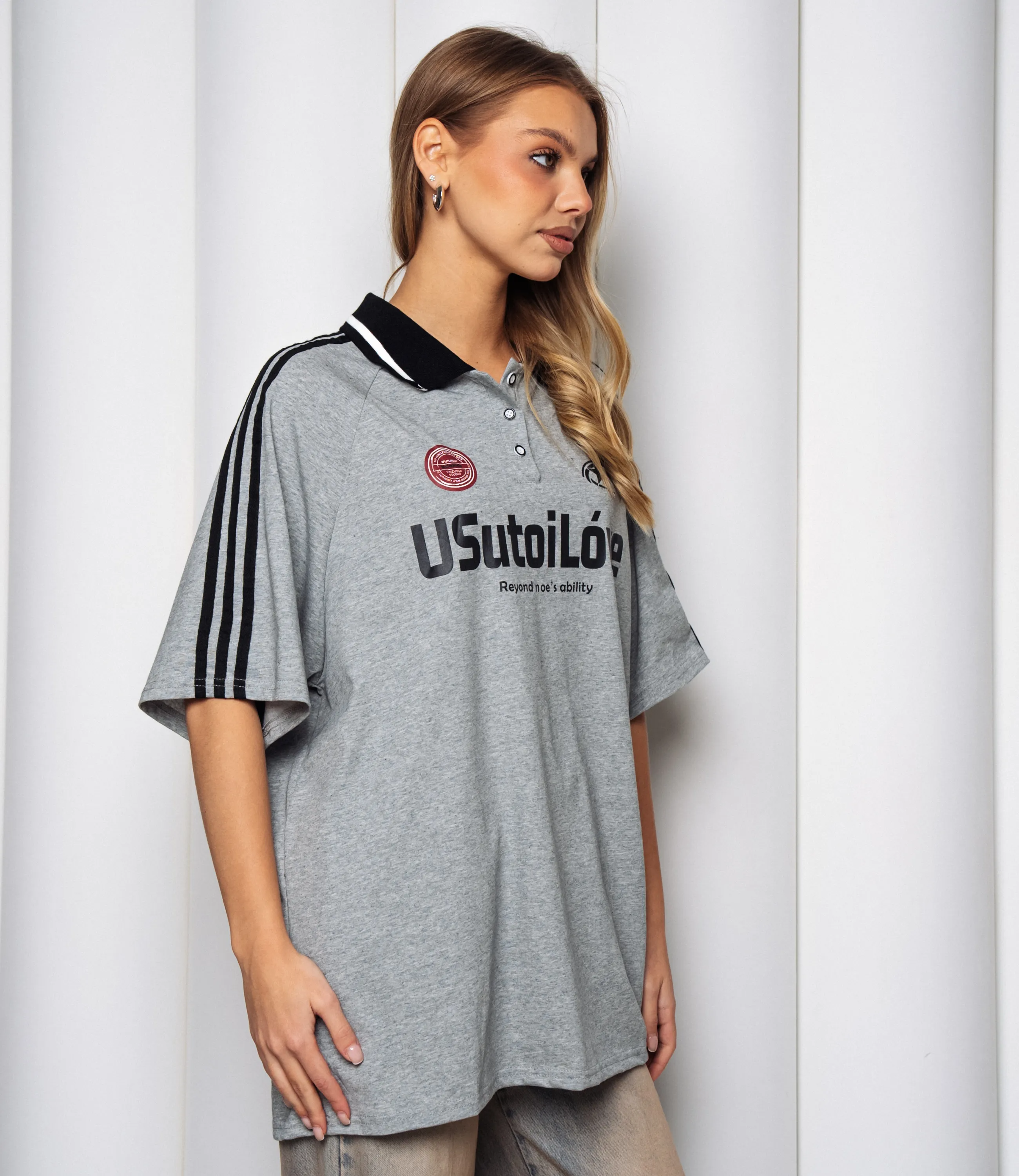 Эта футболка — прекрасный выбор для вашего магазина, предлагая стильный и универсальный дизайн, который станет отличным дополнением к гардеробу ваших клиентов. Футболка полуприлегающего свободного силуэта с отложным воротником и короткой планкой на пуговицах; рукава короткие, немного удлинённые, с контрастными тремя полосами по внешней стороне, плечевые швы обычной посадки; передняя часть декорирована крупным текстовым принтом по центру и двумя небольшими эмблемами в верхней части груди, один из которых круглый, другой в виде стилизованного знака; низ прямой, слегка опущенный, длина до середины бедра; ткань трикотажная, средней плотности, мягкая с лёгкой растяжимостью; обработка горловины и манжет аккуратная, швы декоративные не выражены, общий стиль спортивно-повседневный. Выполненная из 65% полиэстера, 35% хлопка, футболка обеспечивает отличное качество и приятные тактильные ощущения. Независимо от сезона, она станет любимым элементом в гардеробе ваших клиентов. На странице сайта доступна таблица размеров, что позволит вашим покупателям легко найти подходящий вариант. Установленная цена делает эту футболку доступной для широкой аудитории, что обеспечит вам высокий уровень продаж. Рост модели 168 см., 89-63-90.
