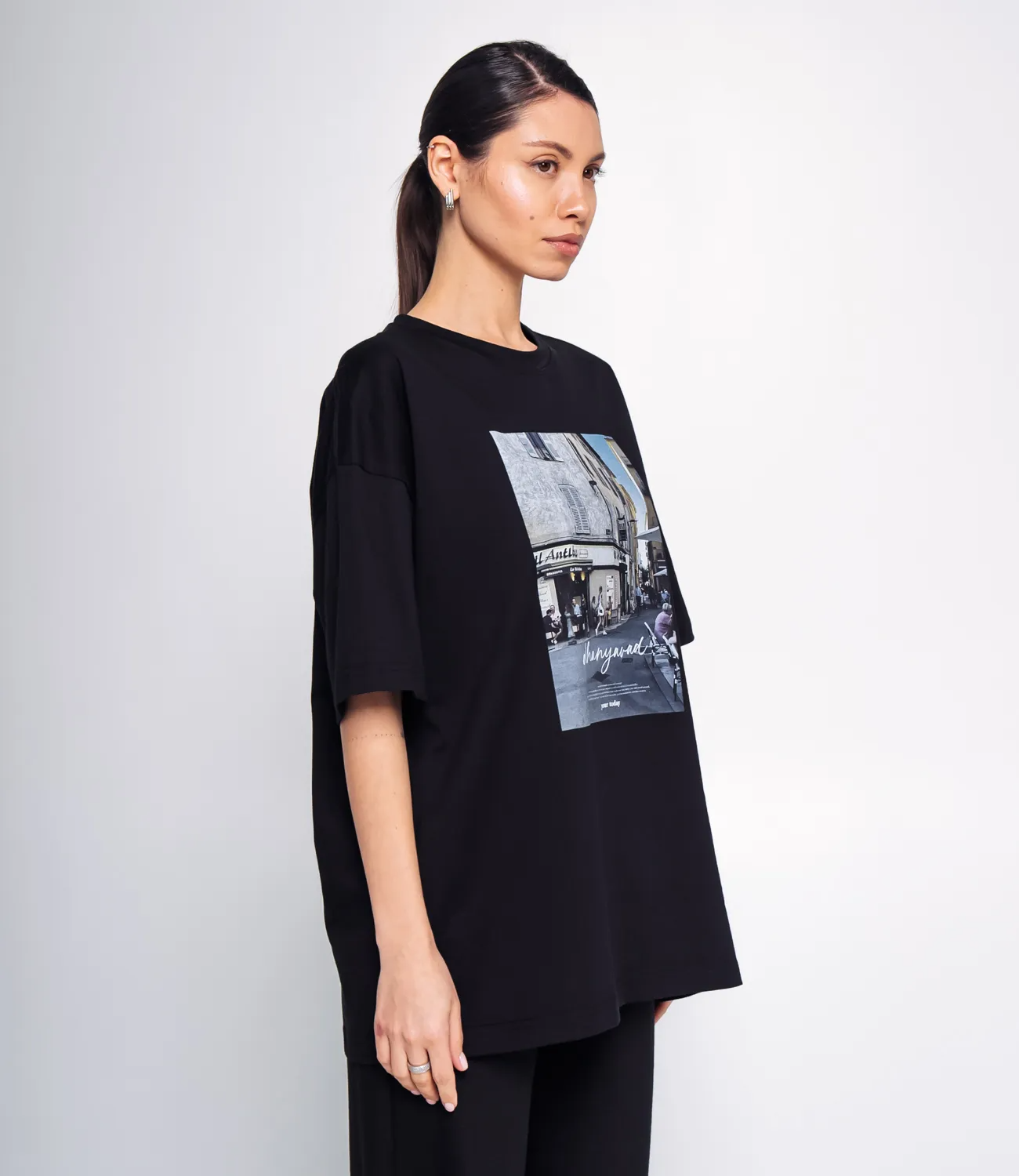 Эта футболка — прекрасный выбор для вашего магазина, предлагая стильный и универсальный дизайн, который станет отличным дополнением к гардеробу ваших клиентов. Дизайн футболки дополняется крупным изображением на передней части, которое, как видно, изображает городской пейзаж. Это придаёт изделию стильный и современный вид, добавляя нотку креативности в образ. Футболка имеет свободный крой, что позволяет ей подходить для повседневной носки. Футболка отлично комбинируется с джинсами, шортами или брюками, что делает её универсальным выбором для различных случаев. Выполненная из 95% хлопка, 5% эластана, футболка обеспечивает отличное качество и приятные тактильные ощущения. Независимо от сезона, она станет любимым элементом в гардеробе ваших клиентов. На странице сайта доступна таблица размеров, что позволит вашим покупателям легко найти подходящий вариант. Установленная цена делает эту футболку доступной для широкой аудитории, что обеспечит вам высокий уровень продаж. Рост 164, 83-61-89.