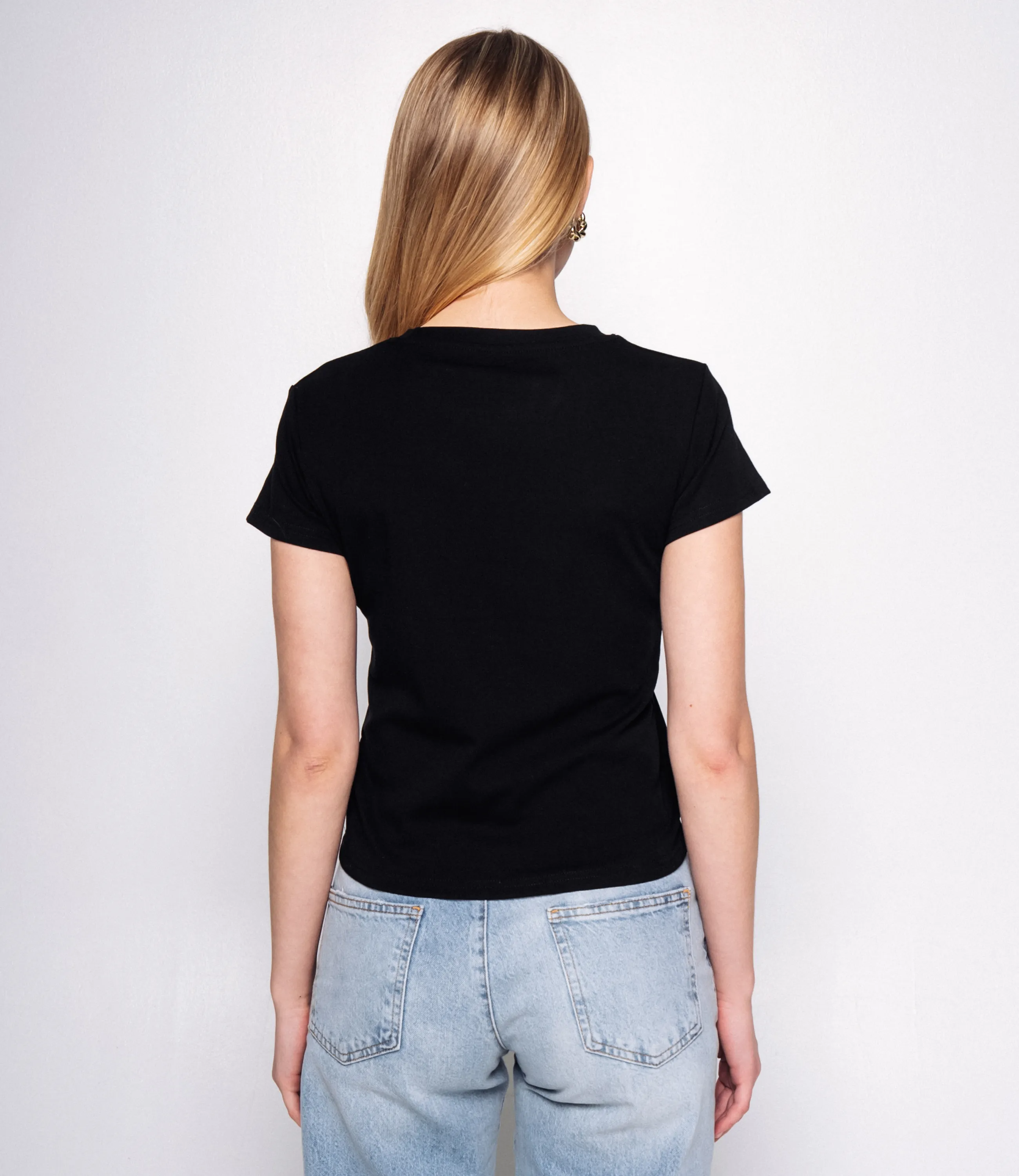 Эта футболка — прекрасный выбор для вашего магазина, предлагая стильный и универсальный дизайн, который станет отличным дополнением к гардеробу ваших клиентов. Футболка прилегающего силуэта с укороченной длиной до талии, выполнена из гладкого трикотажного полотна средней плотности; горловина круглая с плоской обтачкой и двойной строчкой, плечевые швы обычные, рукава короткие, плотно прилегающие, с простой подгибкой и аккуратной строчкой; низ изделия также подшит двойной строчкой, шов ровный; на левой части груди небольшая тонкая вышивка логотипа в виде короткой подписи. Выполненная из ткани с 95% хлопка, 5% спандекса, футболка обеспечивает отличное качество и приятные тактильные ощущения. Независимо от сезона, она станет любимым элементом в гардеробе ваших клиентов. На странице сайта доступна таблица размеров, что позволит вашим покупателям легко найти подходящий вариант. Установленная цена делает эту футболку доступной для широкой аудитории, что обеспечит вам высокий уровень продаж. Вы можете заказать онлайн презентацию на интересующие Вас модели. Наши менеджеры свяжутся с Вами и проведут индивидуальную видеотрансляцию, помогут составить заказ и ответят на Ваши вопросы.