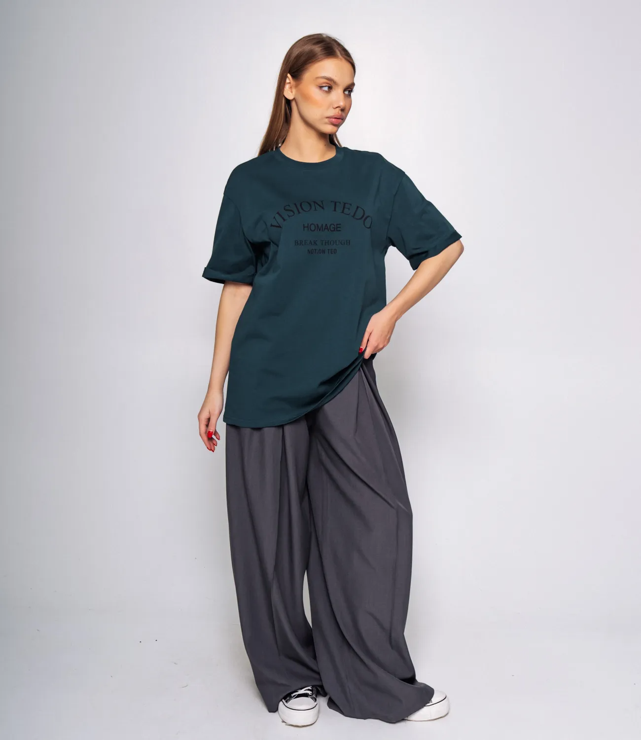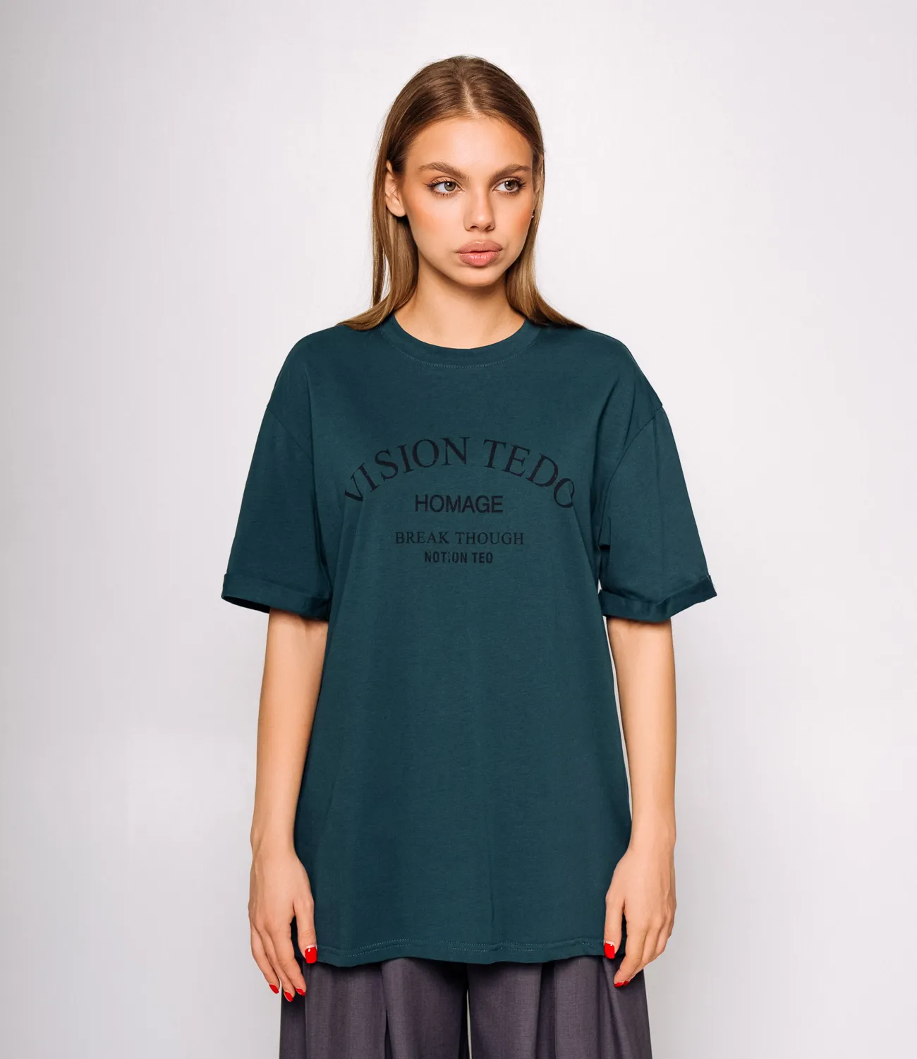 Футболка – это одежда, которая подчеркивает женственность каждой представительницы прекрасного пола. Футболка выполнена в свободном стиле, что делает её идеальной для повседневной носки. Принт в виде надписи делает акцент и привлекает внимание.Она отлично сочетается с различными низами, будь то джинсы, шорты или спортивные брюки, позволяя создать стильный и расслабленный образ. Ее предпочитают покупательницы, которые ценят сочетание качества и цены. Фасон подчеркивает привлекательность фигуры. Компания-производитель знает, как разработать стильные и модные решения.