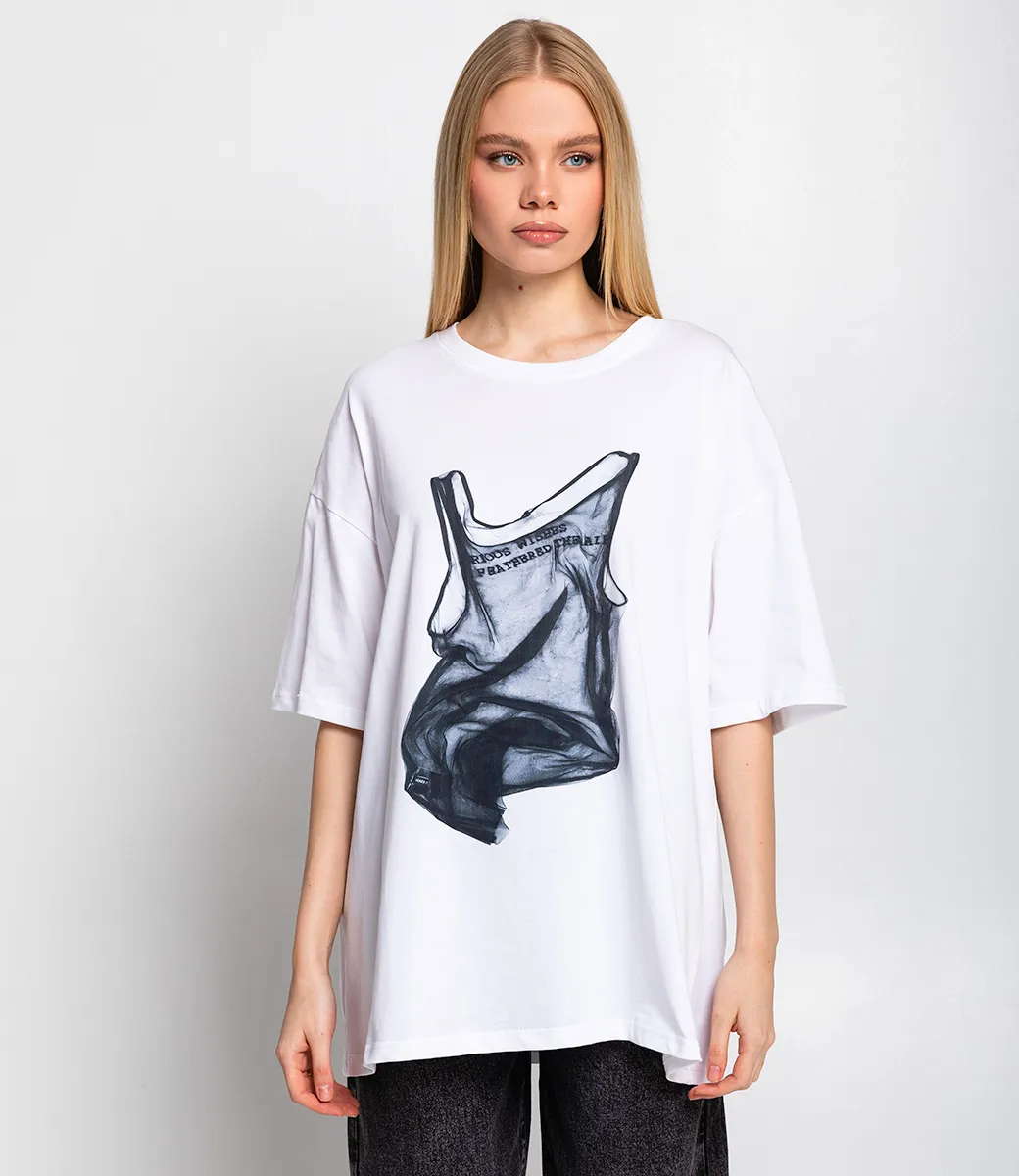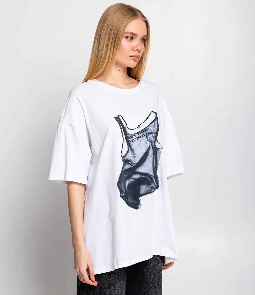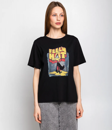 Эта футболка — прекрасный выбор для вашего магазина, предлагая стильный и универсальный дизайн, который станет отличным дополнением к гардеробу ваших клиентов. На передней части футболки изображен принт - графика. Этот элемент дизайна придает футболке оригинальность и креативность, что подходит для современных модных тенденций. Свободный крой позволяет легко сочетать эту футболку с различными стилями. Она отлично смотрится как с джинсами, так и с шортами, а также под юбками или спортивными брюками. Выполненная из 100% хлопка, футболка обеспечивает отличное качество и приятные тактильные ощущения. Независимо от сезона, она станет любимым элементом в гардеробе ваших клиентов. На странице сайта доступна таблица размеров, что позволит вашим покупателям легко найти подходящий вариант. Установленная цена делает эту футболку доступной для широкой аудитории, что обеспечит вам высокий уровень продаж. Рост модели 173, 84-58-89.