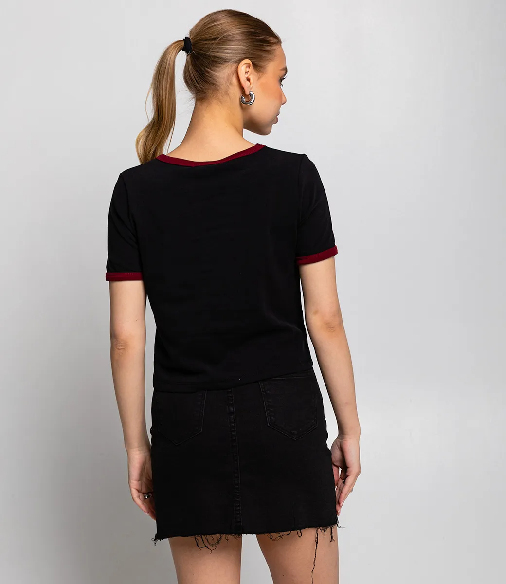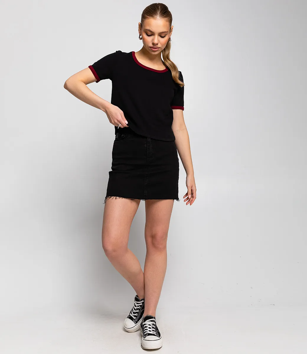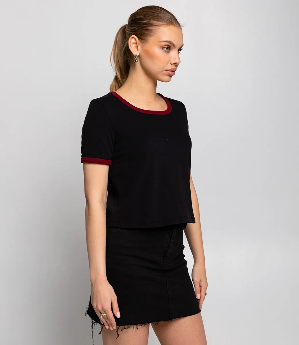 Эта футболка — прекрасный выбор для вашего магазина, предлагая стильный и универсальный дизайн, который станет отличным дополнением к гардеробу ваших клиентов. Футболка имеет укороченный крой. круглый вырез придаёт элемент классики и подходит для разных типов фигур, а цветная отделка добавляет яркости. Короткие рукава обеспечивают легкость и свободу движений, делая футболку подходящей для весенне-летнего сезона или как базовый слой в более холодное время. Выполненная из ткани с 95% хлопка и 5% полиэстер, футболка обеспечивает отличное качество и приятные тактильные ощущения. Независимо от сезона, она станет любимым элементом в гардеробе ваших клиентов. На странице сайта доступна таблица размеров, что позволит вашим покупателям легко найти подходящий вариант. Установленная цена делает эту футболку доступной для широкой аудитории, что обеспечит вам высокий уровень продаж. Рост 168, 89-63-90