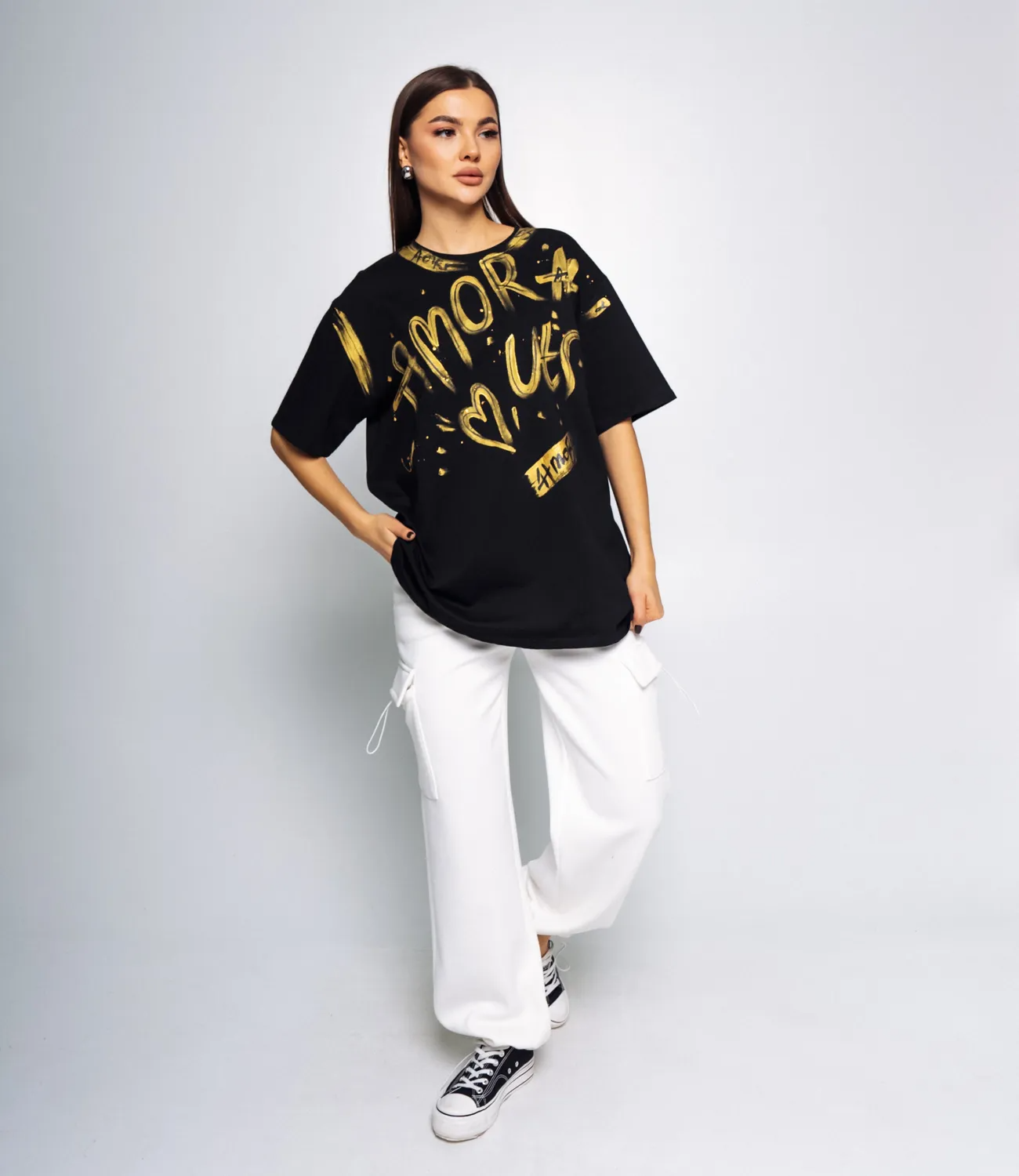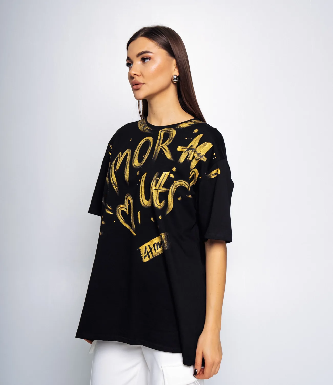 Футболка – это стильный элемент одежды, который подчеркивает индивидуальность и уникальность каждой представительницы прекрасного пола. Модель футболки с принтом в виде надписей и рисунков отлично подойдет для повседневных образов в любое время года. Ее выбирают покупательницы, которые ценят сочетание качества и доступной цены. Свободный крой обеспечивает комфорт и свободу движений, делая ее идеальным вариантом для активного отдыха. Компания-производитель знает, как разработать стильные и модные решения, которые привлекут внимание. Для изготовления использована ткань с составом 90% хлопка и 10% полиэстера, которая характеризуется отличным качеством. Даже после многократных стирок футболка не потеряет первоначальной привлекательности и комфорта. Вы сможете носить её с большим удовольствием и радостью. Обратите внимание на яркие принты и цвета, которые полностью соответствуют фотографии на странице. Чтобы вы были уверены в размере, мы представили на сайте таблицу. Воспользовавшись ею, вы сможете сами обмерить себя и удостовериться. Предложенная нами цена является приемлемой и доступной. Не откажите себе в удовольствии быть стильной и комфортной!
