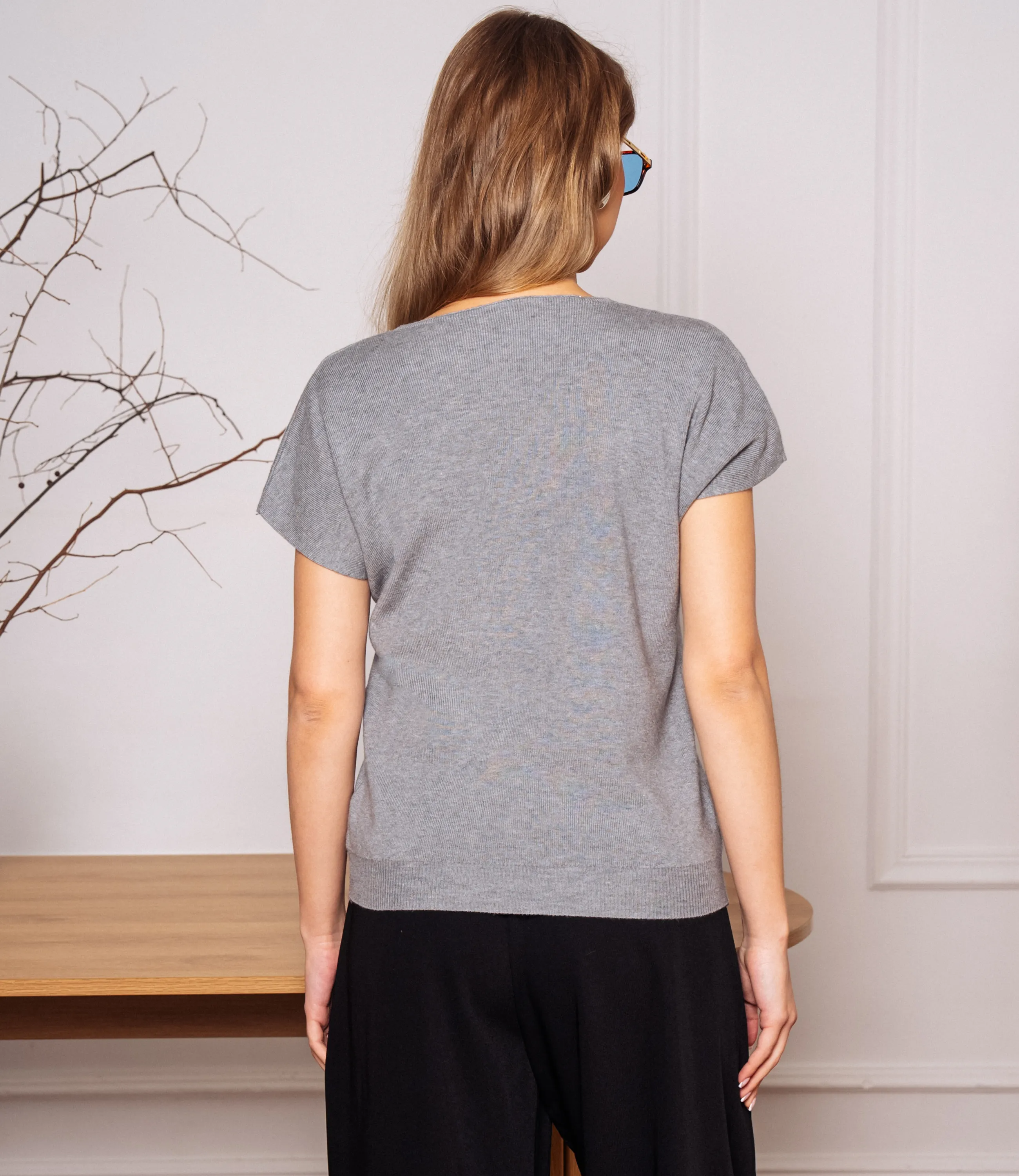 Эта футболка — прекрасный выбор для вашего магазина, предлагая стильный и универсальный дизайн, который станет отличным дополнением к гардеробу ваших клиентов. Футболка из мягкого трикотажного полотна с плотной, но эластичной текстурой, выполнена с V-образным вырезом ворота средней глубины и аккуратно обработанной бейкой по горловине; плечевые швы расположены естественно, рукава короткие, немного расширенные и свободно ниспадающие, без манжет, с ровным подшивом; силуэт полуприлегающий, слегка свободный в талии. Выполненная из ткани с 65% хлопка, 35% полиэстера, футболка обеспечивает отличное качество и приятные тактильные ощущения. Независимо от сезона, она станет любимым элементом в гардеробе ваших клиентов. На странице сайта доступна таблица размеров, что позволит вашим покупателям легко найти подходящий вариант. Установленная цена делает эту футболку доступной для широкой аудитории, что обеспечит вам высокий уровень продаж.