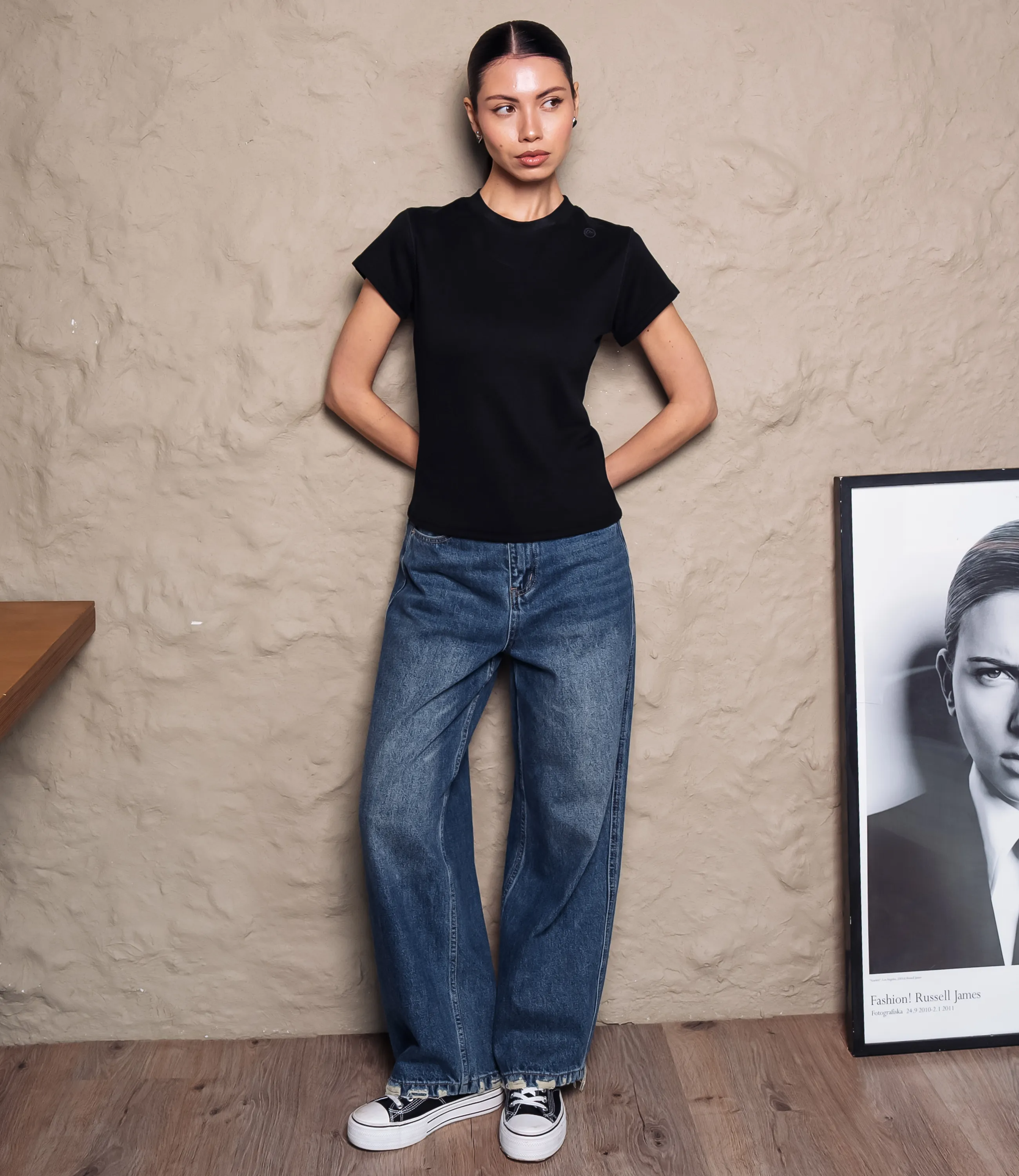 Эта футболка — прекрасный выбор для вашего магазина, предлагая стильный и универсальный дизайн, который станет отличным дополнением к гардеробу ваших клиентов. Футболка классического кроя с круглым вырезом горловины и короткими рукавами средней длины; посадка прямо по корпусу, не облегающая и не слишком свободная; плечевые швы расположены по стандартной линии плеч; длина до уровня бедер с аккуратным прямым подолом. Материал гладкий, тонкий, с мягкой, слегка матовой поверхностью и умеренной струящейся драпировкой; ткань выглядит плотной, но эластичной, с равномерной текстурой без выраженного плетения. Горловой край оформлен узкой окантовкой из той же ткани, швы аккуратно прострочены. Рукава имеют классическую прямую форму, край рукава ровный и аккуратно подшит. Выполненная из ткани с 95% хлопка и 5% спандекс, футболка обеспечивает отличное качество и приятные тактильные ощущения. Независимо от сезона, она станет любимым элементом в гардеробе ваших клиентов. На странице сайта доступна таблица размеров, что позволит вашим покупателям легко найти подходящий вариант. Установленная цена делает эту футболку доступной для широкой аудитории, что обеспечит вам высокий уровень продаж. Рост модели: 164, параметры: 83-61-89.
