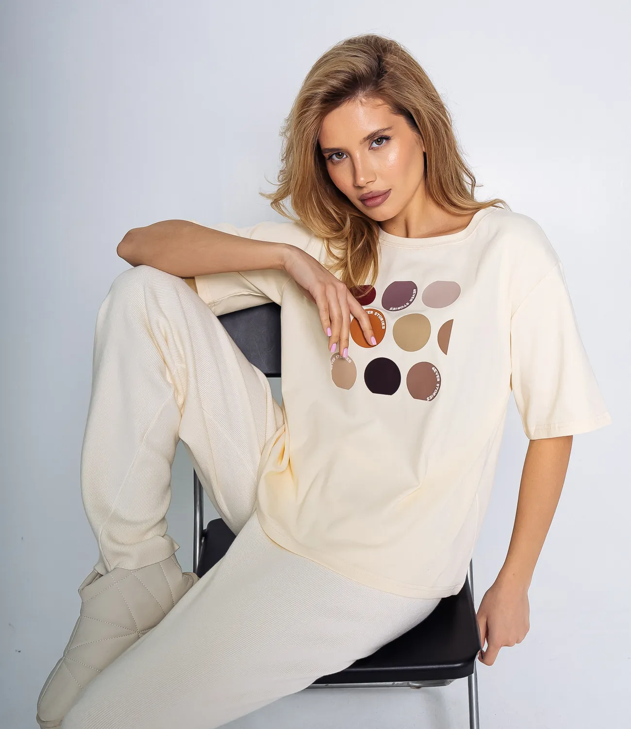Хлопковая футболка с ярким и оригинальным принтом отлично подойдет для повседневного или активного отдыха.
