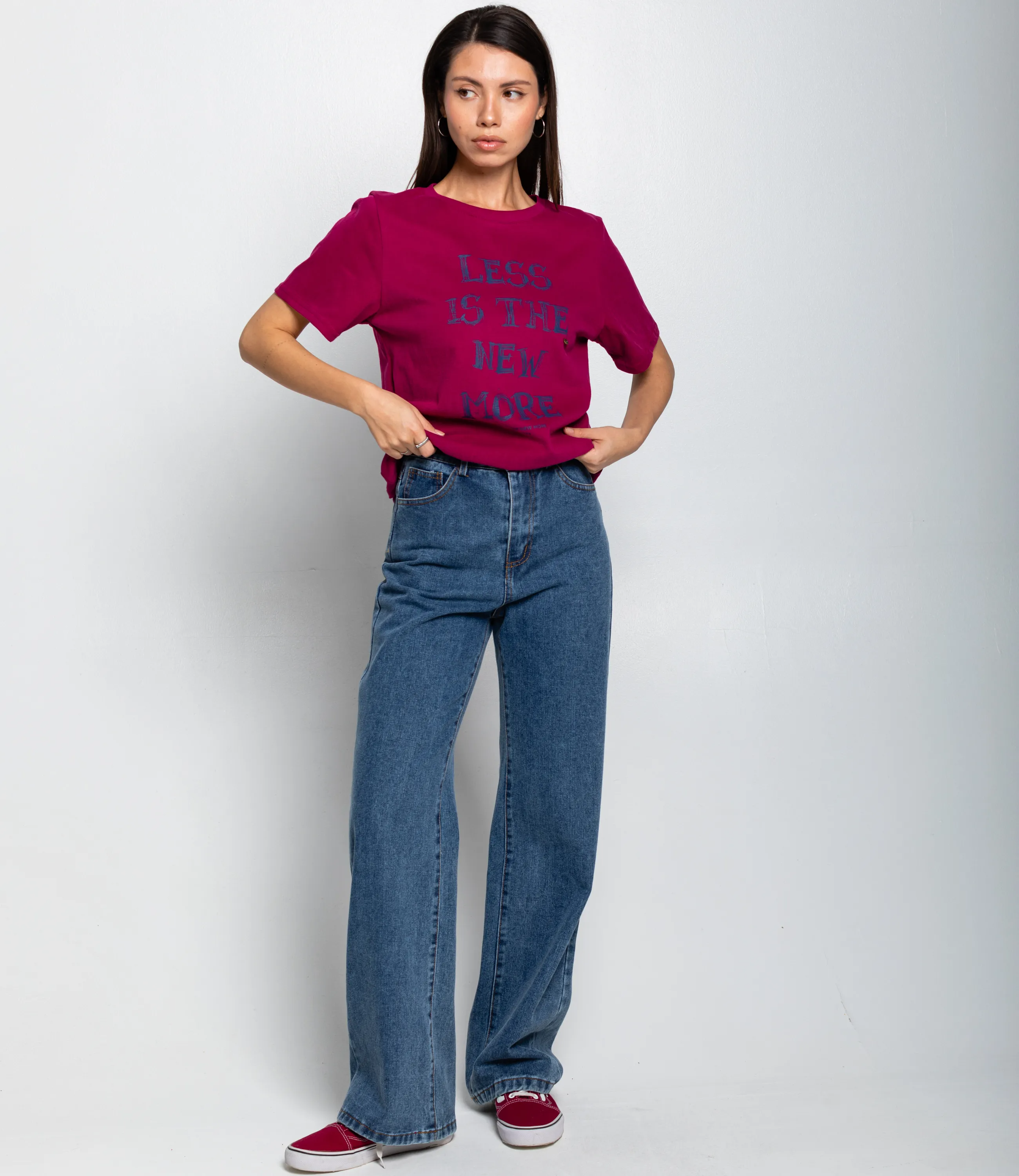 Эта футболка — прекрасный выбор для вашего магазина, предлагая стильный и универсальный дизайн, который станет отличным дополнением к гардеробу ваших клиентов. Футболка прямая по силуэту, средняя длина — до линий бёдер. Модель с короткими рукавами стандартной ширины, рукава заканчиваются чуть выше середины плеча. Горловина круглая, выполнена с отделочной планкой одинаковой ширины по всей окружности. Ткань выглядит как трикотаж с гладким, плотным переплетением; материал мягко облегает тело, но держит форму, без выраженной прозрачности. Швы стандартные: плечевые швы уложены ровно, боковые швы отсутствуют на видимых деталях спереди, низ изделия обработан подгибом с прострочкой. Линия плеч слегка смещена к естественному плечевому краю, без сильно заниженной или приподнятой проймы. На передней части крупный принт из текста, расположенный по центру туловища вертикально. Выполненная из 80% хлопок, 20% полиэстера, футболка обеспечивает отличное качество и приятные тактильные ощущения. Независимо от сезона, она станет любимым элементом в гардеробе ваших клиентов. На странице сайта доступна таблица размеров, что позволит вашим покупателям легко найти подходящий вариант. Установленная цена делает эту футболку доступной для широкой аудитории, что обеспечит вам высокий уровень продаж. Рост модели: 164, параметры: 83-61-89. Вы можете заказать онлайн презентацию на интересующие Вас модели. Наши менеджеры свяжутся с Вами и проведут индивидуальную видеотрансляцию, помогут составить заказ и ответят на Ваши вопросы.