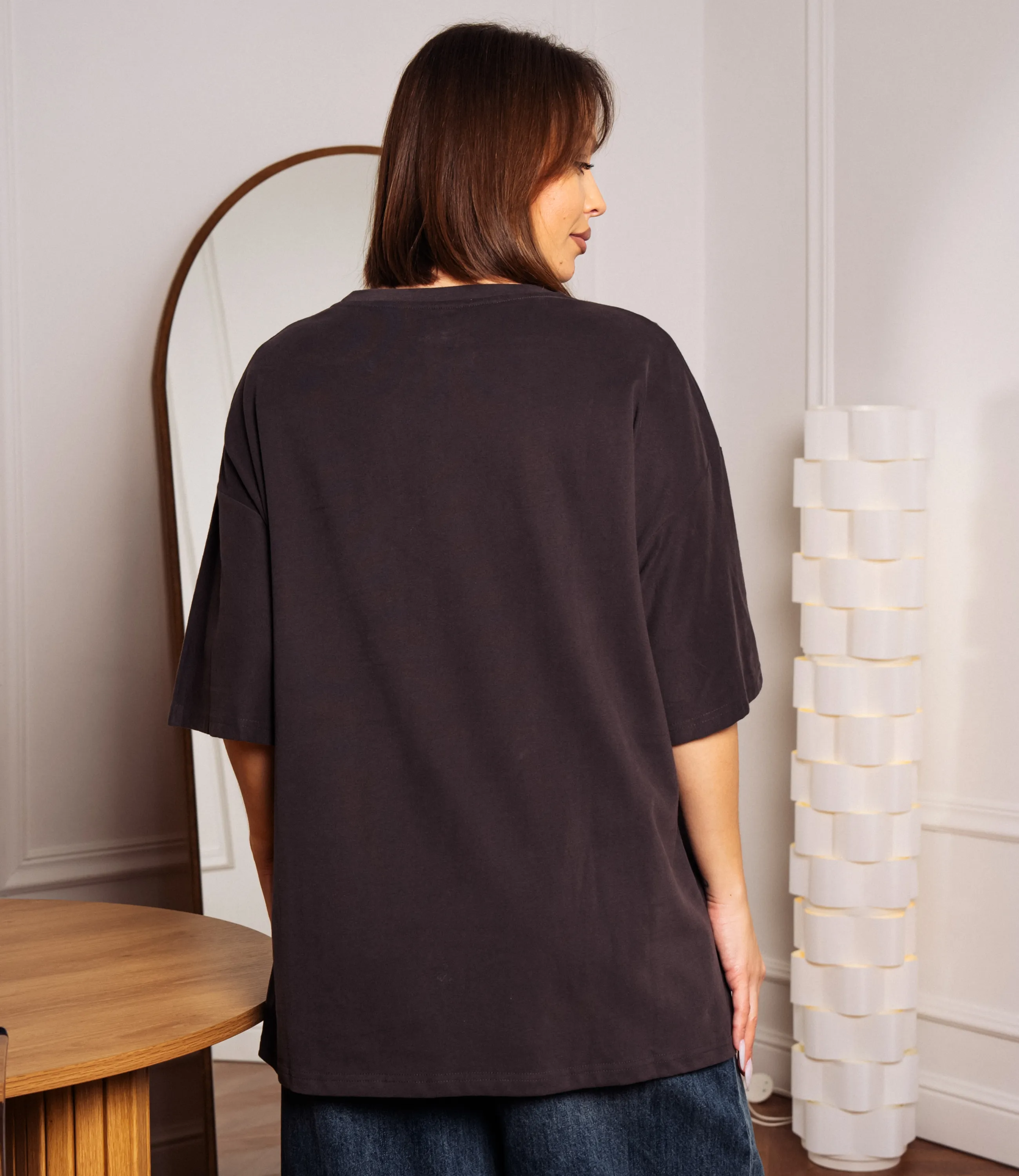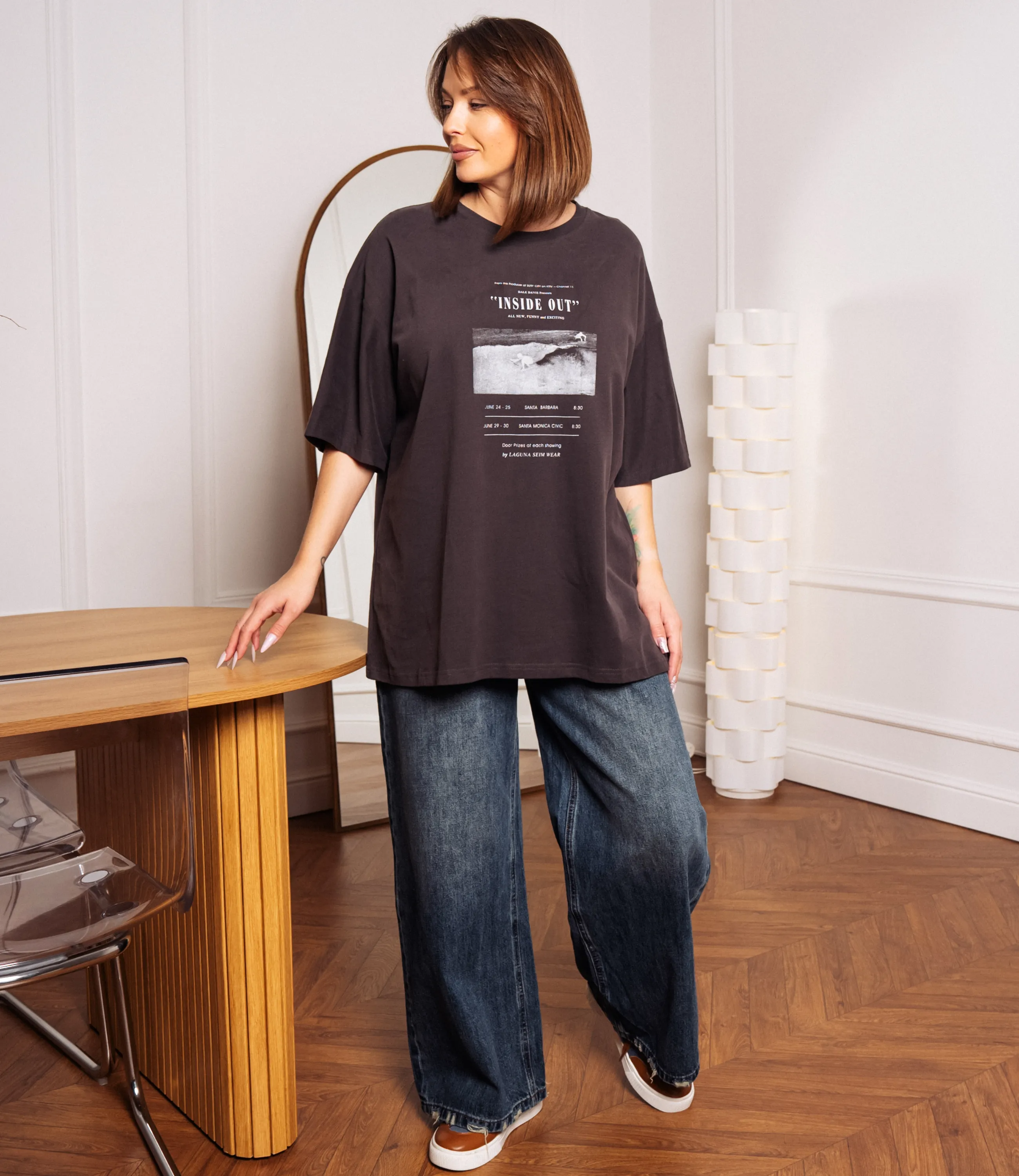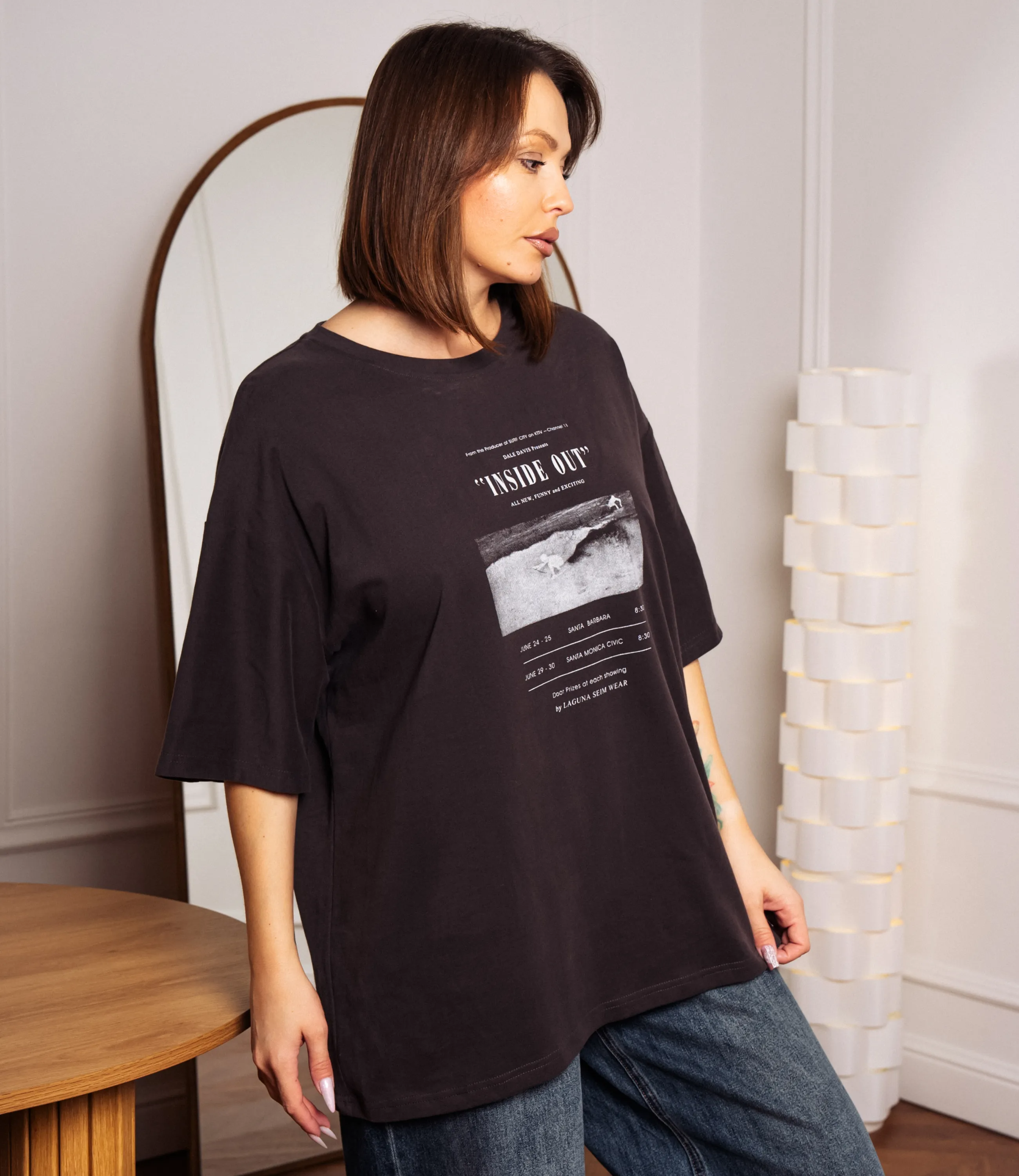 Эта футболка — пречёрный выбор для вашего магазина, предлагая стильный и универсальный дизайн, который станет отличным дополнением к гардеробу ваших клиентов. Футболка свободного оверсайз‑кроя из гладкого трикотажа с круглым плоским вырезом горловины и опущенной линией плеч, рукава средней длины, широкие по объёму; передняя часть декорирована центральным прямоугольным принтом в виде фотографии с несколькими строками мелкого текста над и под изображением. Выполненная из ткани с 100% хлопка, футболка обеспечивает отличное качество и приятные тактильные ощущения. Независимо от сезона, она станет любимым элементом в гардеробе ваших клиентов. На странице сайта доступна таблица размеров, что позволит вашим покупателям легко найти подходящий вариант. Установленная цена делает эту футболку доступной для широкой аудитории, что обеспечит вам высокий уровень продаж.