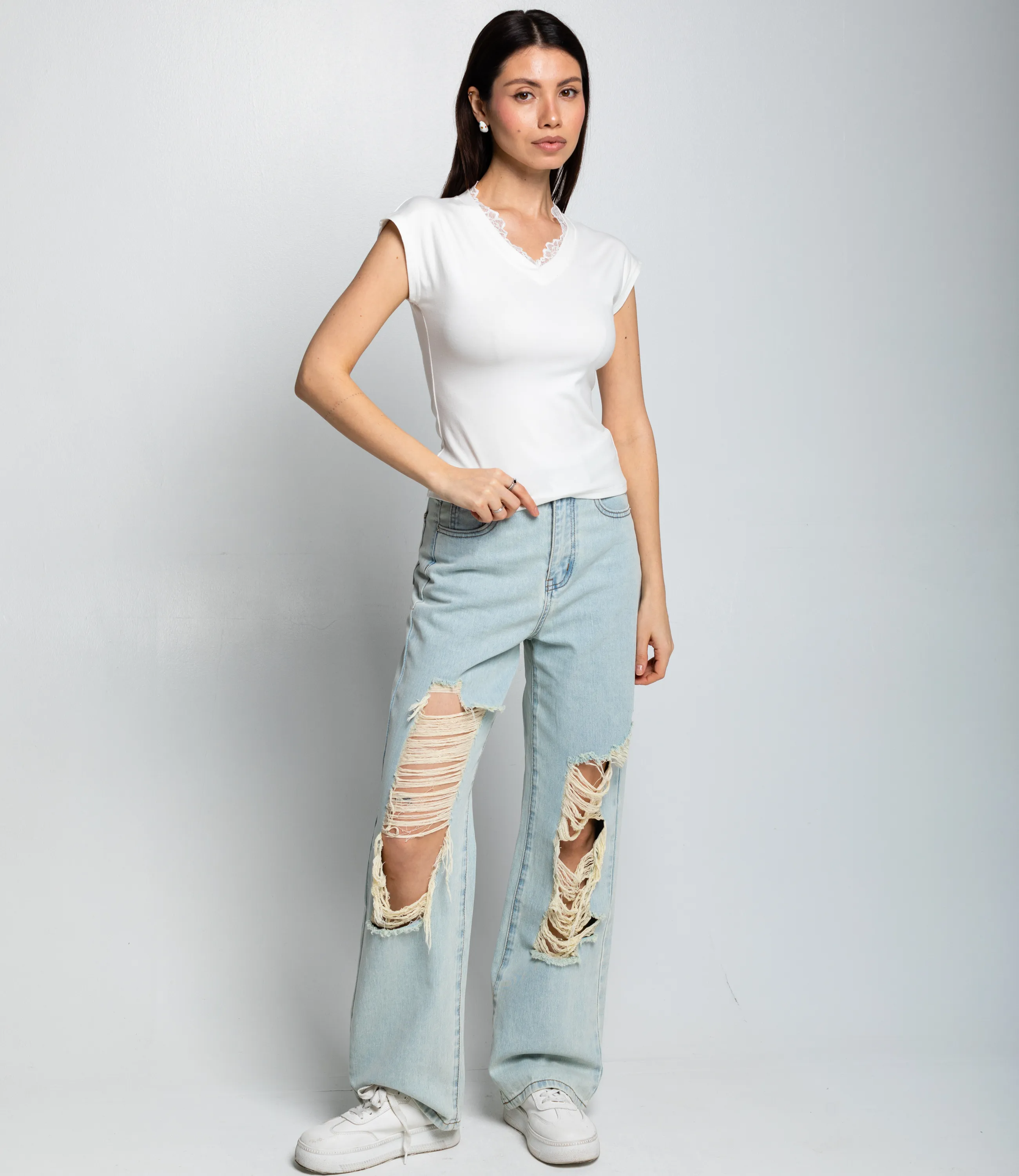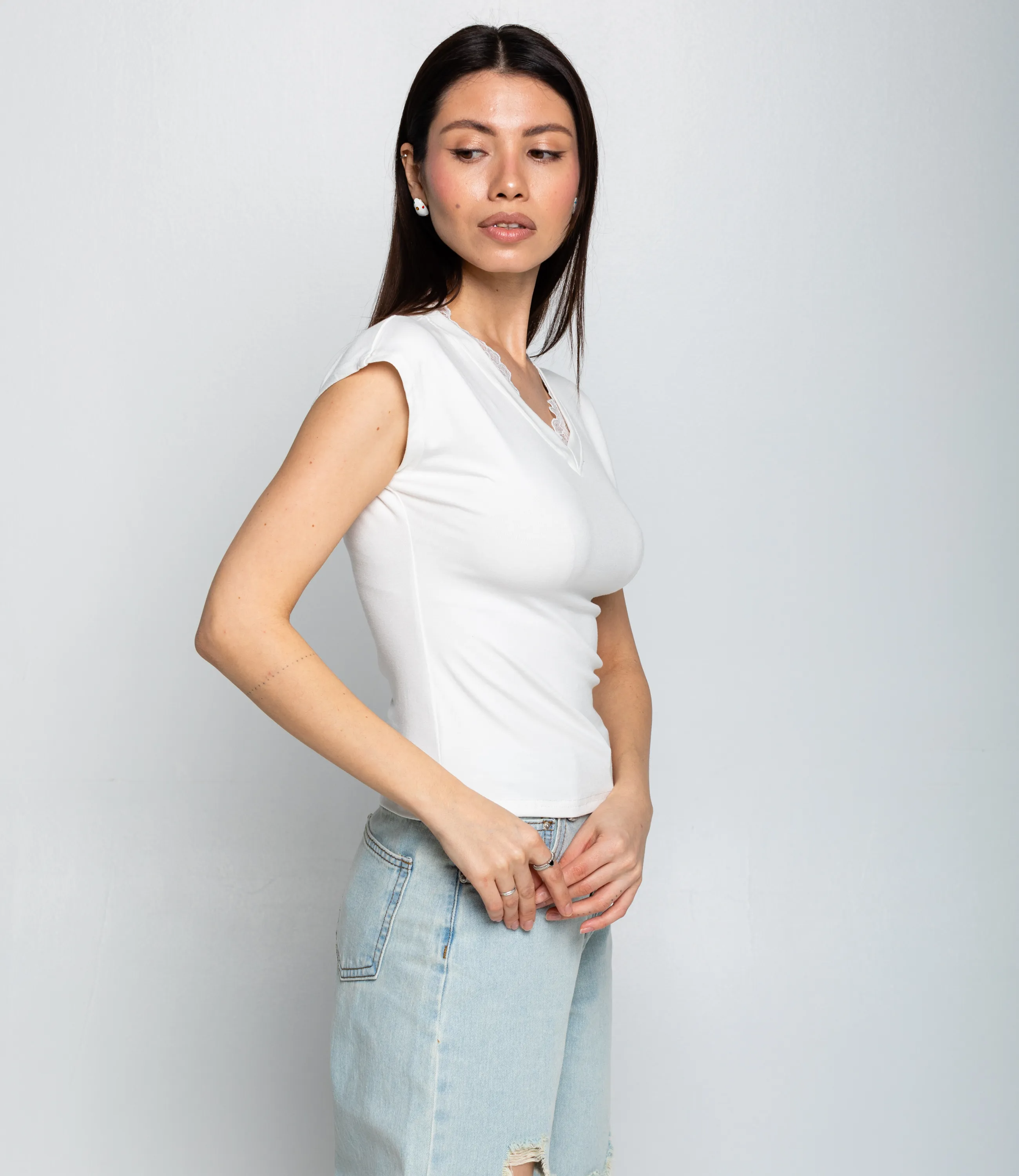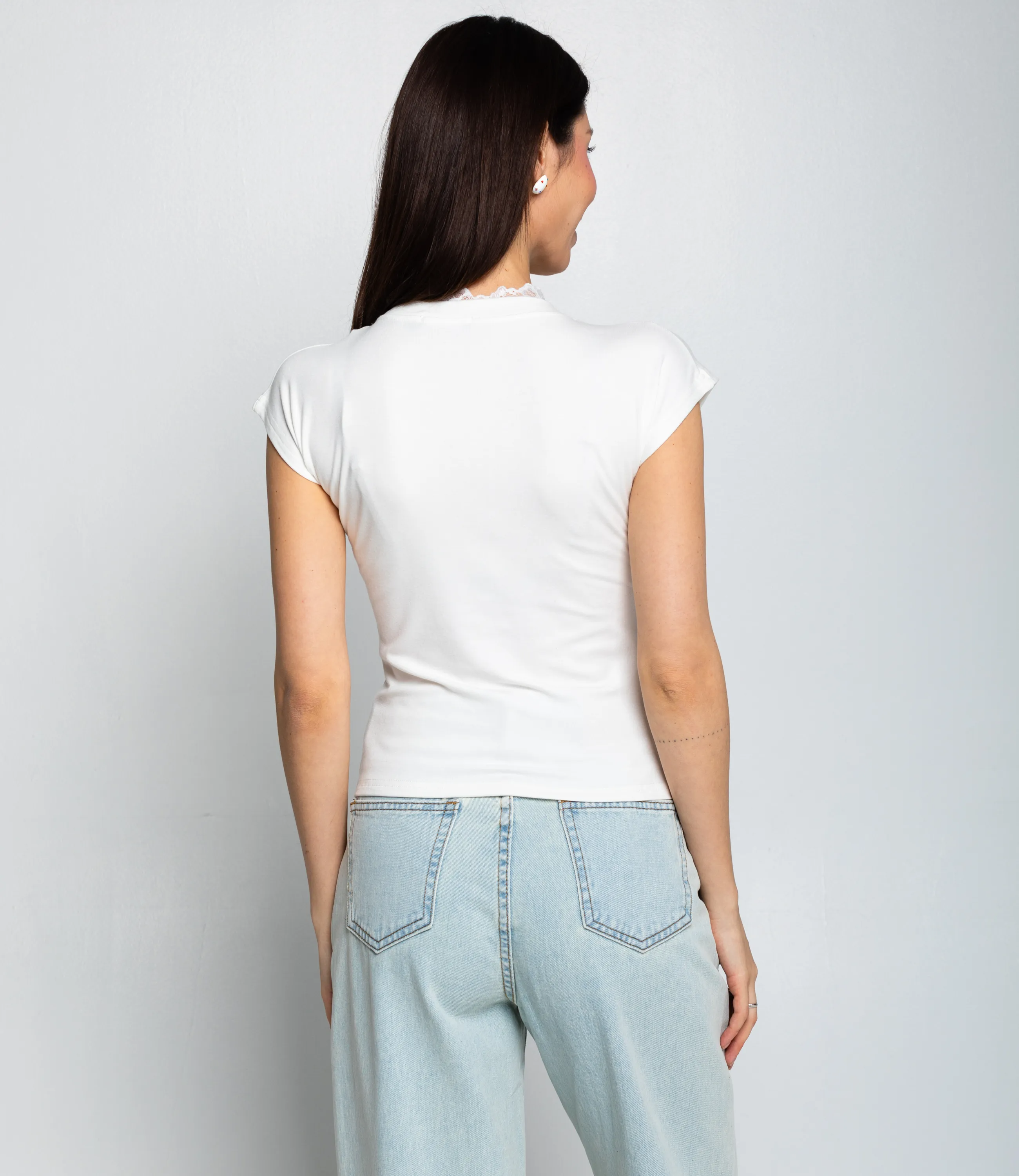 Футболка — это одежда, которая подчёркивает женственность любой женщины. Модель отлично подойдёт для летнего сезона и будет востребована в ваших розничных магазинах. Её выбирают оптовые покупатели, которые ценят сочетание качества и цены. Крой подчёркивает фигуру: футболка имеет приталенный силуэт, аккуратно подчёркивающий талию и грудь. Вырез оформлен V-образным декольте с деликатной декоративной отделкой в виде кружевной или рельефной каймы, что придаёт изделию лёгкий и женственный акцент. Длина изделия средняя — универсальна для сочетания с разными стилями одежды, от повседневного до более элегантного. Для пошива использована ткань из 65% хлопка, 30% полиэстера и 5% эластана, отличающаяся плотностью, эластичностью и износостойкостью. Материал сохраняет форму и внешний вид даже после многократных стирок, поэтому футболка будет хорошо продаваться в рознице. Цвета насыщенные и полностью соответствуют фотографиям на сайте. На странице размещена таблица размеров: воспользовавшись ею, вы сможете самостоятельно снять мерки и убедиться в правильности подбора. Установленная оптовая цена является выгодной; для оптовых клиентов действуют гибкая система скидок и индивидуальные условия сотрудничества. Уточнить минимальный заказ и сроки поставки можно у менеджера. Предложите своим покупательницам женственную и практичную футболку, которая станет надёжным товаром в ассортименте ваших магазинов. Рост модели 164 см., 83-61-89.