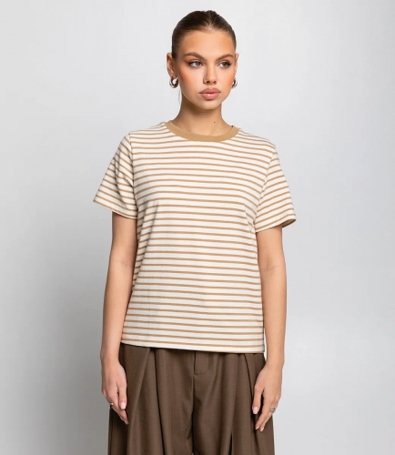 Эта футболка — прекрасный выбор для вашего магазина, предлагая стильный и универсальный дизайн, который станет отличным дополнением к гардеробу ваших клиентов. Эта модель представлена в классическом полосатом узоре, сочетая нейтральные и приглушенные тона, что делает её универсальной. Футболка с традиционным круглым вырезом и короткими рукавами, свободного кроя, что обеспечивает свободу движений и комфорт. Идеально подходит для сочетания с джинсами, шортами или брюками, а также может быть использована как базовый элемент для создания многослойных образов. Выполненная из ткани с 95% хлопка и 5% полиэстер, футболка обеспечивает отличное качество и приятные тактильные ощущения. Независимо от сезона, она станет любимым элементом в гардеробе ваших клиентов. На странице сайта доступна таблица размеров, что позволит вашим покупателям легко найти подходящий вариант. Установленная цена делает эту футболку доступной для широкой аудитории, что обеспечит вам высокий уровень продаж. Рост 168, 89-63-90.
