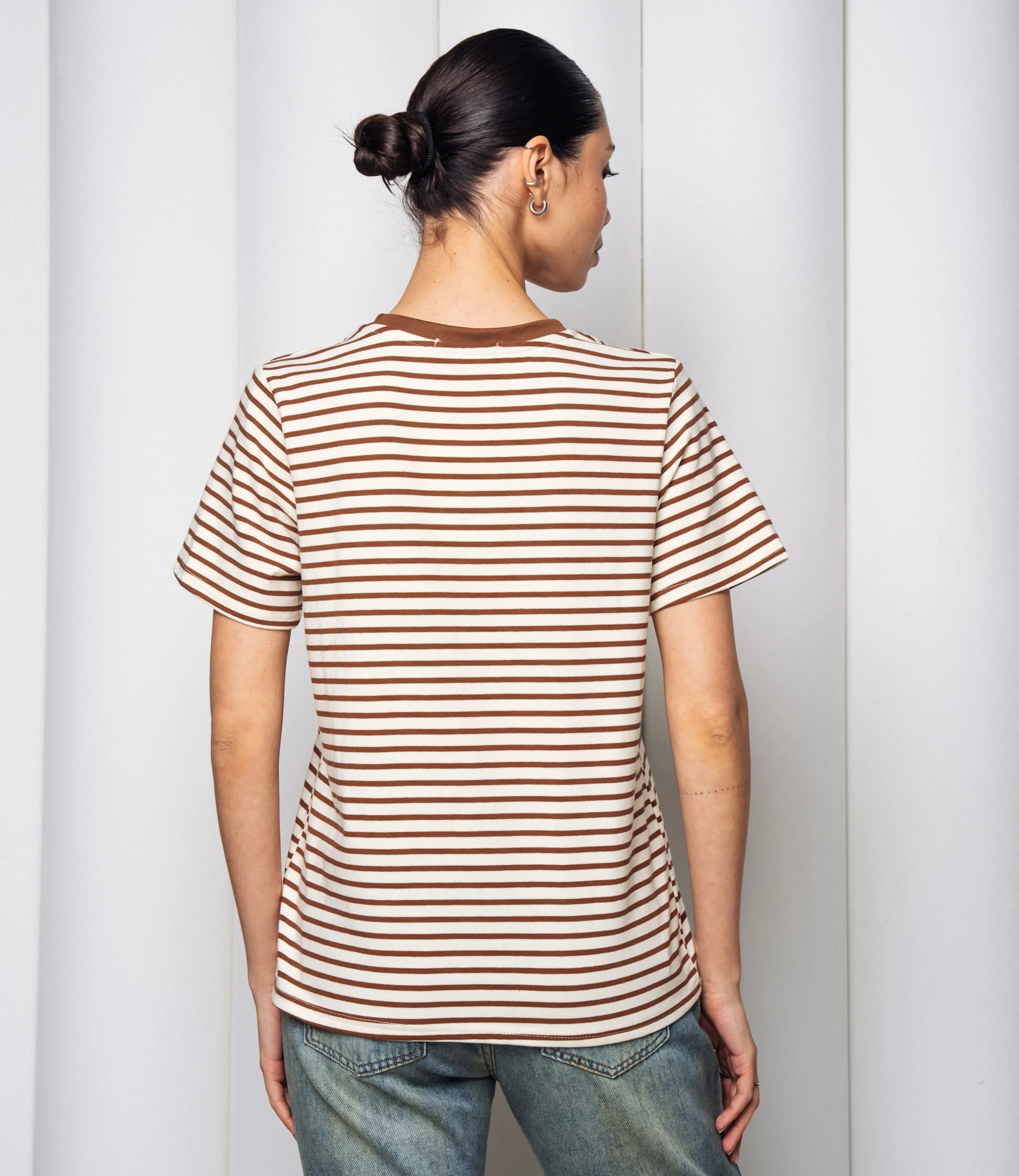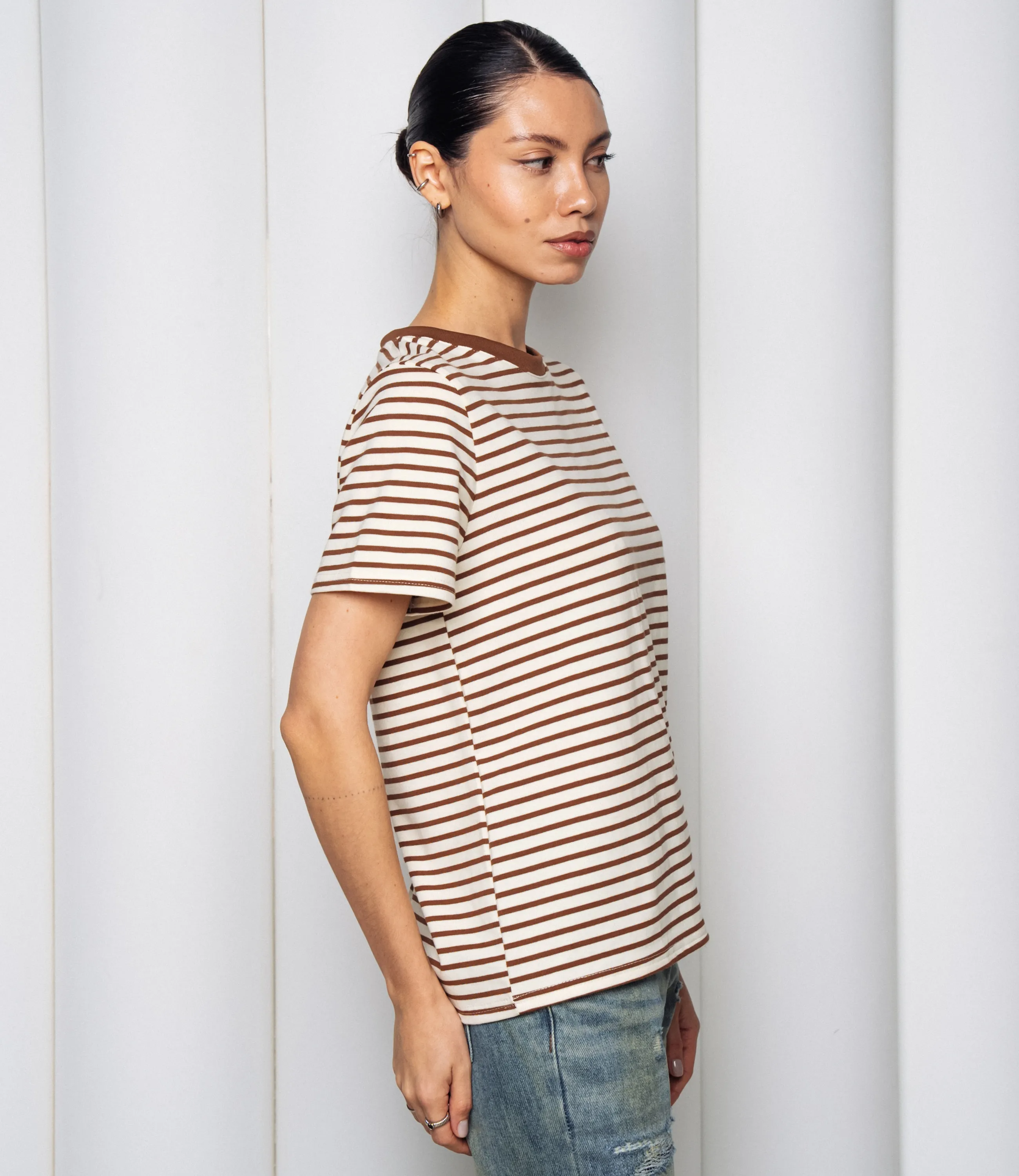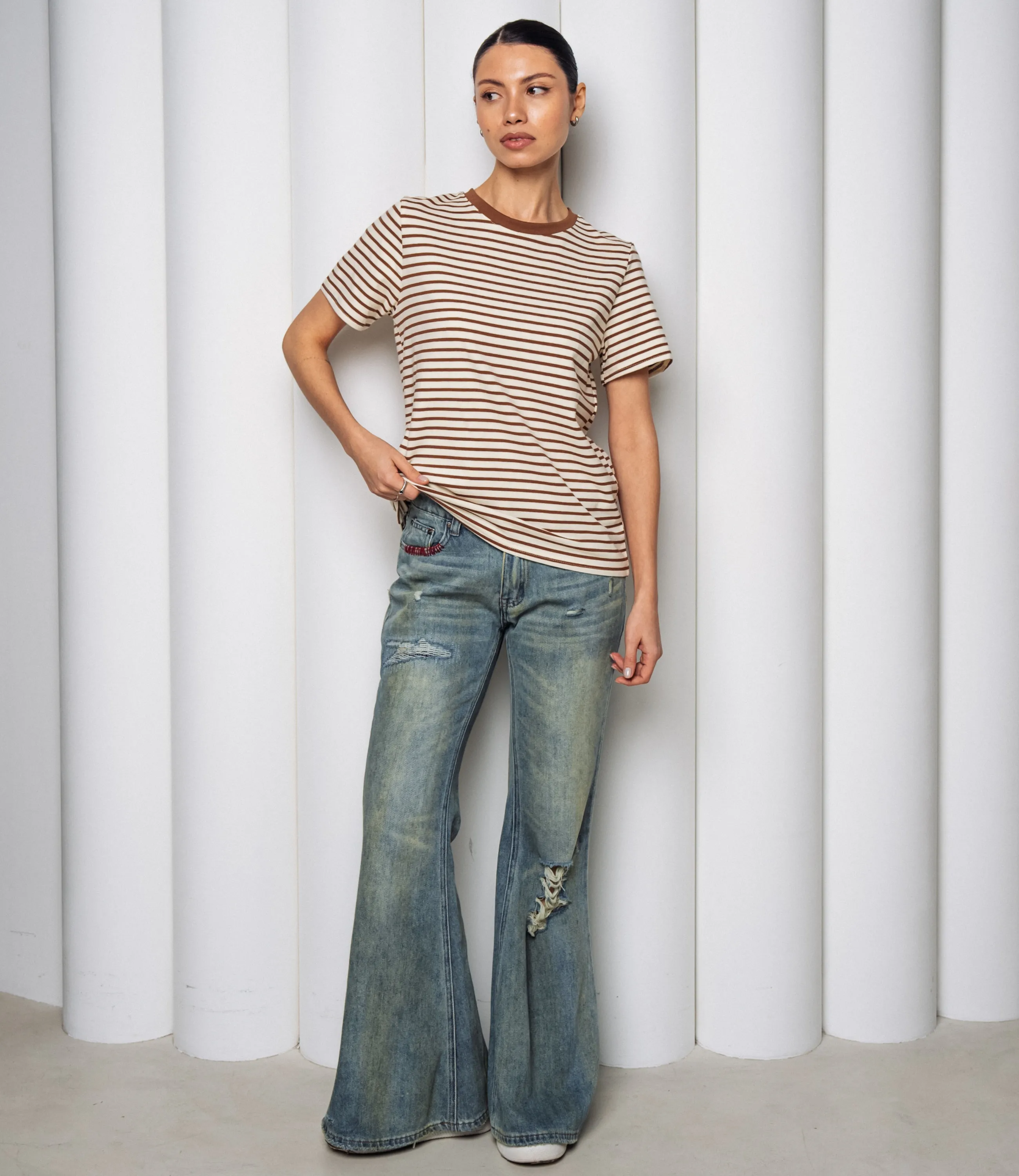 Эта футболка — прекрасный выбор для вашего магазина, предлагая стильный и универсальный дизайн, который станет отличным дополнением к гардеробу ваших клиентов. Эта модель представлена в классическом полосатом узоре, сочетая нейтральные и приглушенные тона, что делает её универсальной. Футболка с традиционным круглым вырезом и короткими рукавами, свободного кроя, что обеспечивает свободу движений и комфорт. Идеально подходит для сочетания с джинсами, шортами или брюками, а также может быть использована как базовый элемент для создания многослойных образов. Выполненная из ткани с 95% хлопка и 5% полиэстер, футболка обеспечивает отличное качество и приятные тактильные ощущения. Независимо от сезона, она станет любимым элементом в гардеробе ваших клиентов. На странице сайта доступна таблица размеров, что позволит вашим покупателям легко найти подходящий вариант. Установленная цена делает эту футболку доступной для широкой аудитории, что обеспечит вам высокий уровень продаж. Рост модели: 164, параметры: 83-61-89.