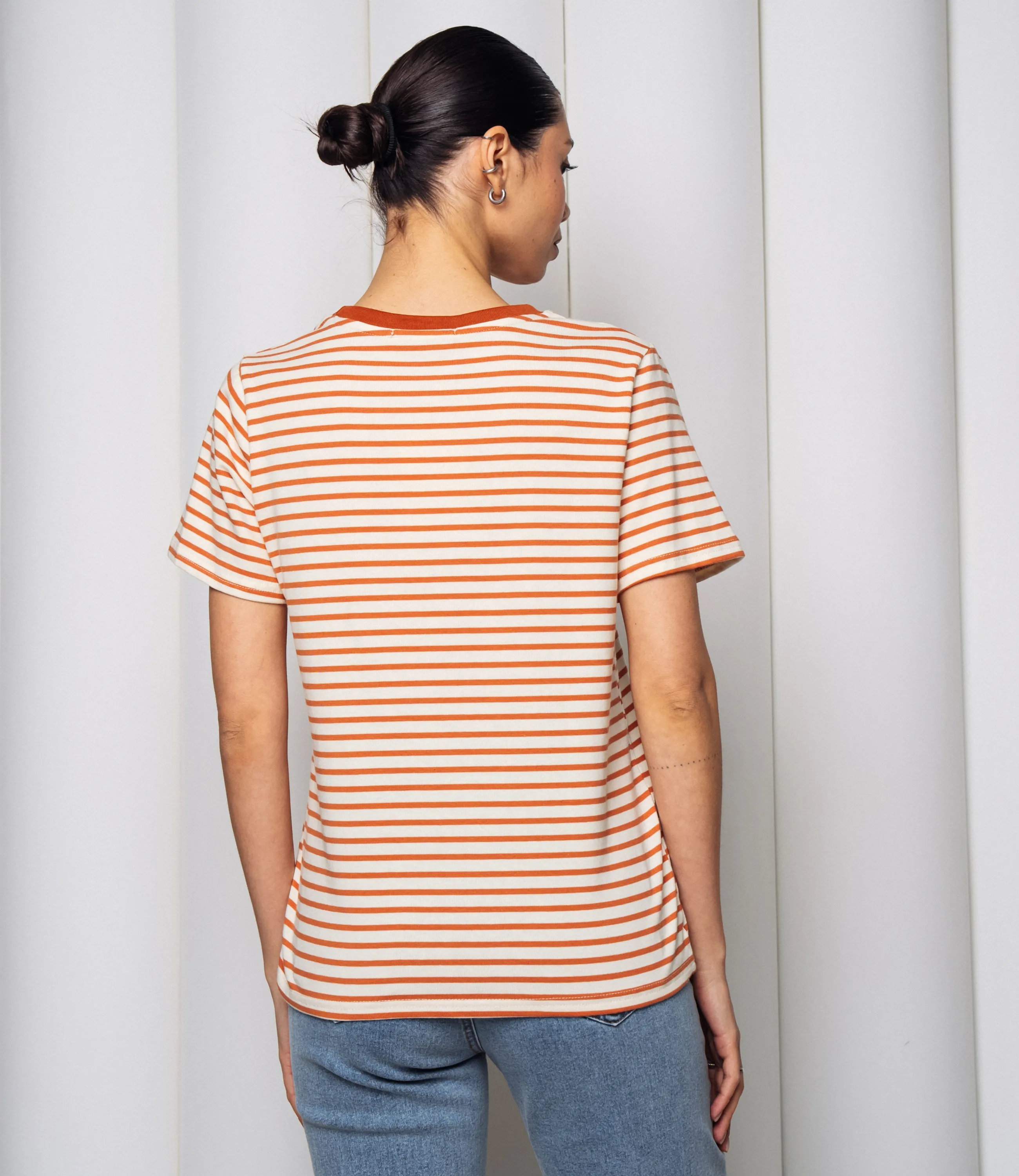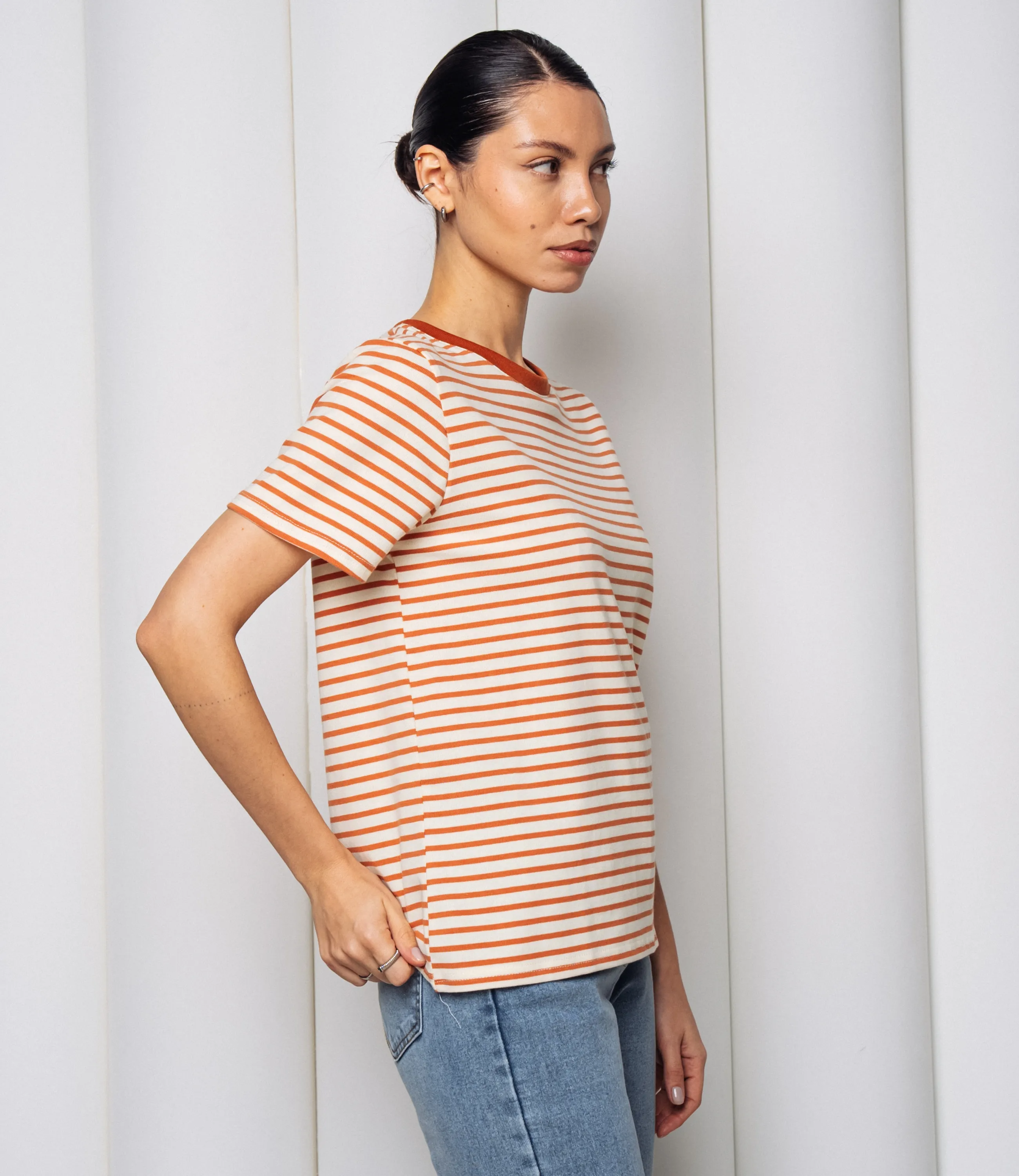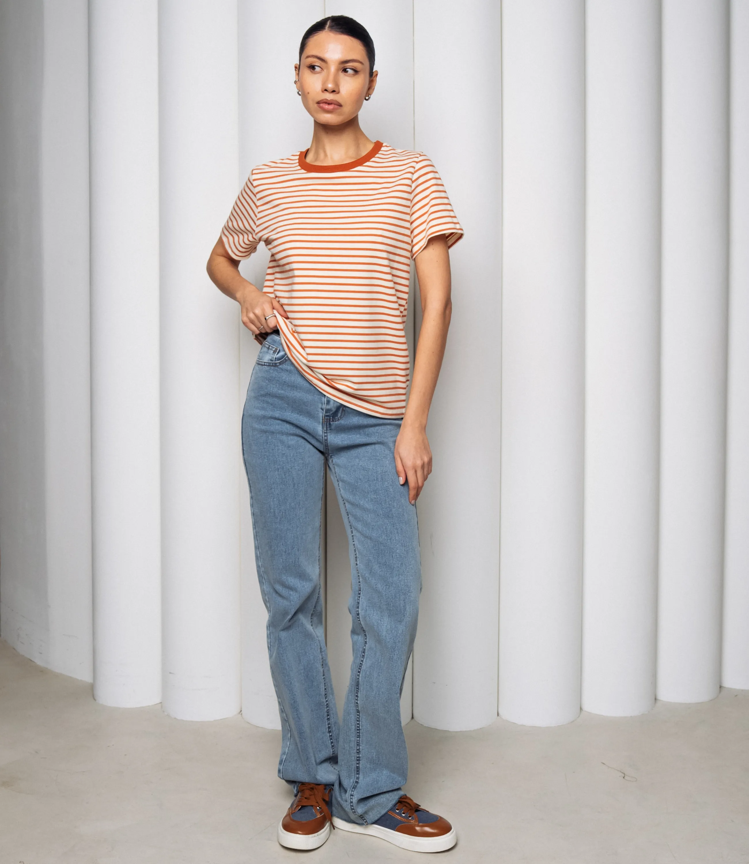 Эта футболка — прекрасный выбор для вашего магазина, предлагая стильный и универсальный дизайн, который станет отличным дополнением к гардеробу ваших клиентов. Эта модель представлена в классическом полосатом узоре, сочетая нейтральные и приглушенные тона, что делает её универсальной. Футболка с традиционным круглым вырезом и короткими рукавами, свободного кроя, что обеспечивает свободу движений и комфорт. Идеально подходит для сочетания с джинсами, шортами или брюками, а также может быть использована как базовый элемент для создания многослойных образов. Выполненная из ткани с 95% хлопка и 5% полиэстер, футболка обеспечивает отличное качество и приятные тактильные ощущения. Независимо от сезона, она станет любимым элементом в гардеробе ваших клиентов. На странице сайта доступна таблица размеров, что позволит вашим покупателям легко найти подходящий вариант. Установленная цена делает эту футболку доступной для широкой аудитории, что обеспечит вам высокий уровень продаж. Рост модели: 164, параметры: 83-61-89.