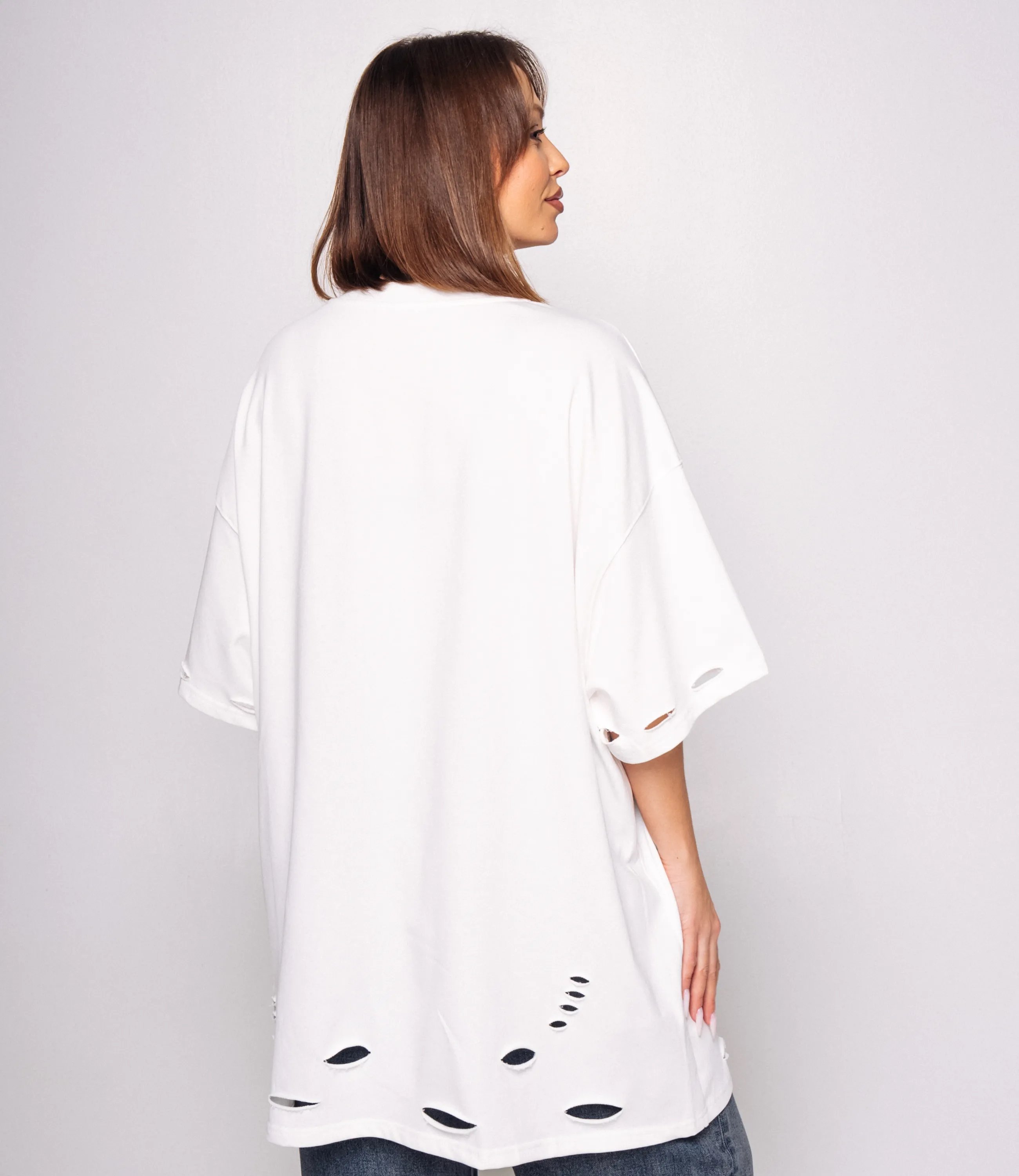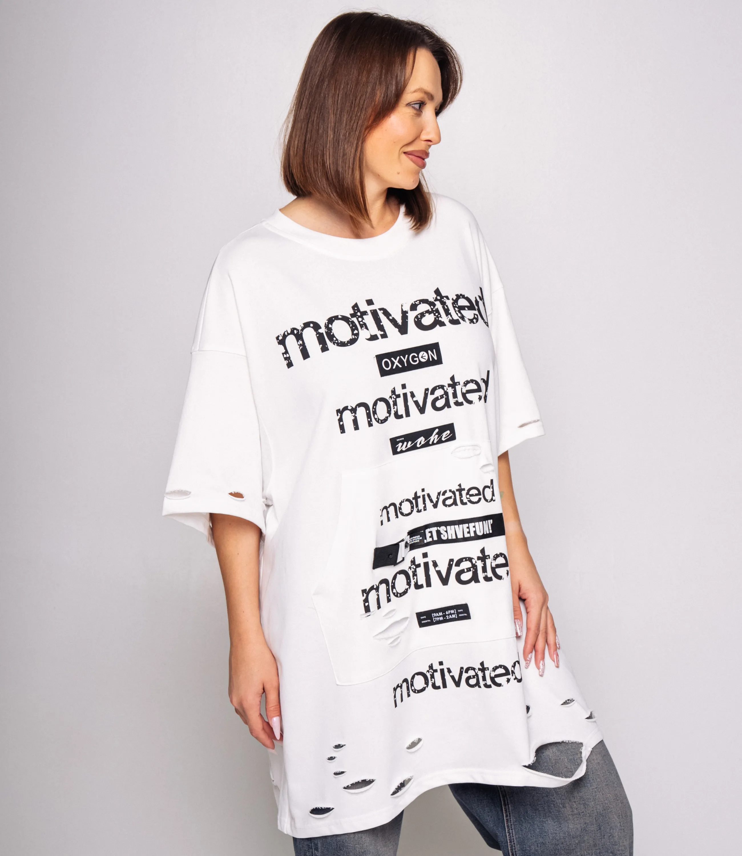 Эта футболка — пребелый выбор для вашего магазина, предлагая стильный и универсальный дизайн, который станет отличным дополнением к гардеробу ваших клиентов. Свободный оверсайз прямого кроя до середины бёдер с опущенной линией плеч, круглая горловина с плотной планкой, короткие широкие рукава до локтя, трикотаж средней плотности, мягко драпируется и слегка тянется, накладной карман-кенгуру на передней панели, декоративные прорези и состаренные участки, множественные графические надписи и пришитые лейблы. Выполненная из ткани с 95% хлопка, 5% полиэстера, футболка обеспечивает отличное качество и приятные тактильные ощущения. Независимо от сезона, она станет любимым элементом в гардеробе ваших клиентов. На странице сайта доступна таблица размеров, что позволит вашим покупателям легко найти подходящий вариант. Установленная цена делает эту футболку доступной для широкой аудитории, что обеспечит вам высокий уровень продаж.