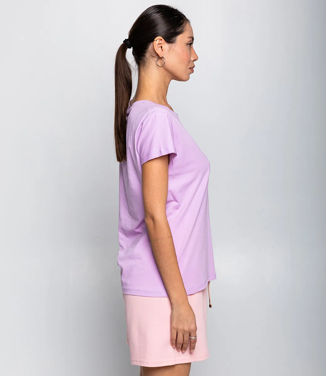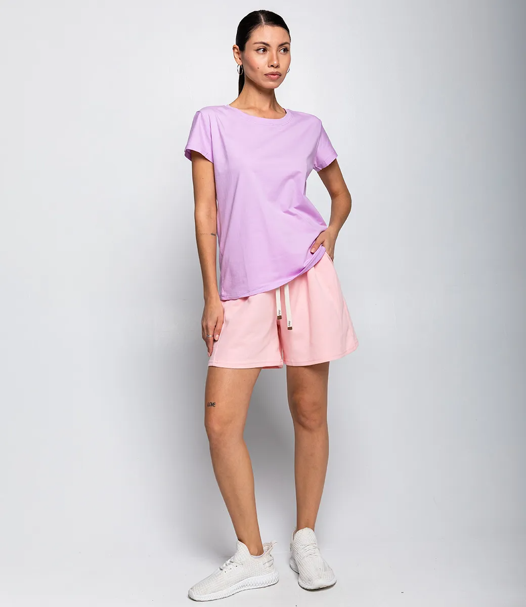 Базовая однотонная футболка с натуральным составом, идеальной длины. Универсальная модель прекрасно смотрится с джинсами, брюками, юбкой, также ее можно надевать в офис под пиджак или кардиган. Рост модели: 164, параметры: 83-61-89.