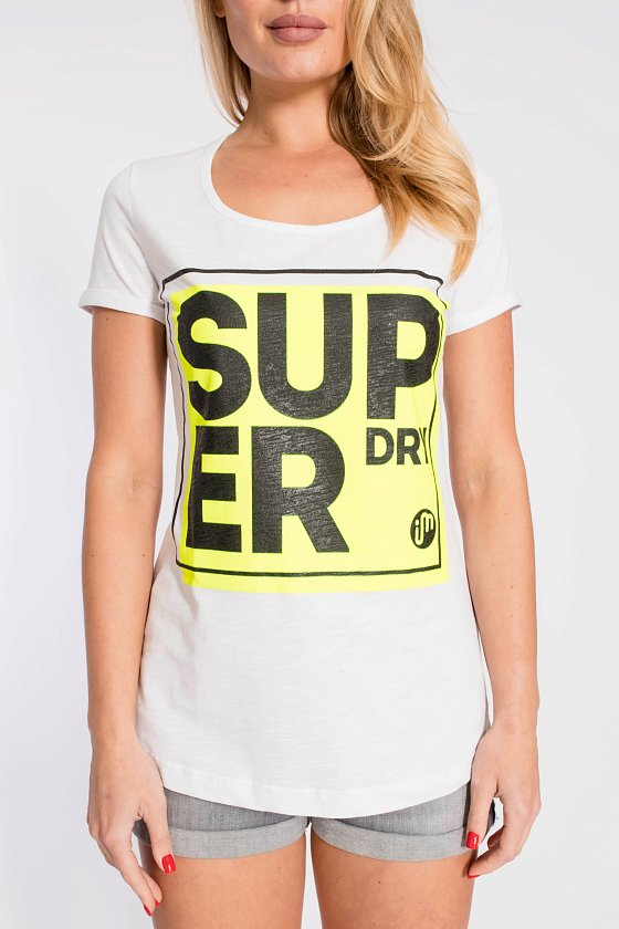 Футболка выполнена из хлопкового полотна кулирка фламли. Силуэт приталенный, круглый вырез горловины обработан бейкой. Спереди расположен яркий принт.