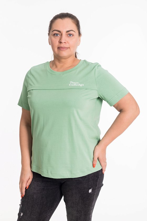 Женская футболка с принтом изготовлена из хлопкового полотна, что обеспечивает комфорт и хорошую воздухопроницаемость. Футболка имеет короткий рукав и круглый вырез горловины, что придает ей классический стильный вид. Такая модель футболки отлично сочетается с джинсами, брюками или юбкой. Изготовленная из натуральной ткани, футболка обеспечит комфорт в течение всего дня.