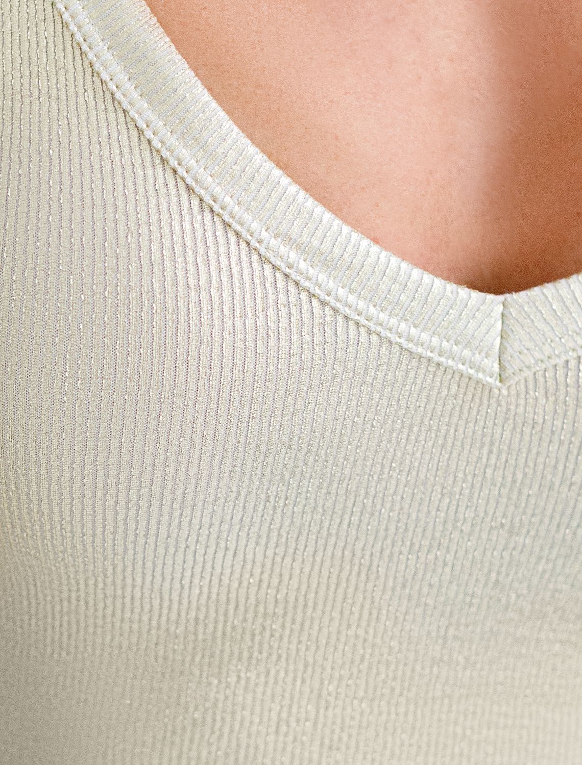 Стильная футболка золотистого цвета с V вырезом выполнена из премиального хлопка с добавлением эластана. Эффектное матовое покрытие металлик придает футболке изысканный блеск. Чуть удлиненные рукава и глубокий вырез, открывающий область декольте, добавляют женственность и элегантность образу. Мелкий рубчик визуально вытягивает силуэт, за счет эластана в составе материал прекрасно тянется и садится на любую фигуру, в том числе большие размеры. Ткань износостойкая, сохраняет свой превоначальный вид даже после многочисленных стирок, отличается мягкостью и приятными тактильными ощущениями, такой материал не раздражает кожу, дарит ощущение уюта даже при длительном ношении, а воздухопроницаемость позволяет коже свободно дышать.