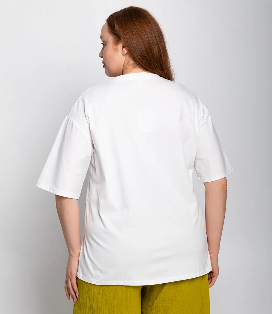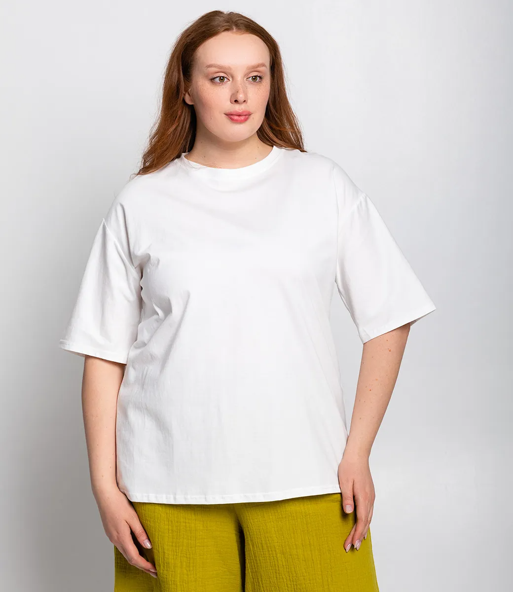 Эта футболка — прекрасный выбор для вашего магазина, предлагая стильный и универсальный дизайн, который станет отличным дополнением к гардеробу ваших клиентов. Свободный стиль, который обеспечивает комфорт и свободу движений. Широкие рукава и удлиненная форма делают футболку универсальной для различных нарядов. Классический круглый вырез горловины, который подходит практически всем типам фигур. Выполненная из 95% хлопка, 5% эластан, футболка обеспечивает отличное качество и приятные тактильные ощущения. Независимо от сезона, она станет любимым элементом в гардеробе ваших клиентов. На странице сайта доступна таблица размеров, что позволит вашим покупателям легко найти подходящий вариант. Установленная цена делает эту футболку доступной для широкой аудитории, что обеспечит вам высокий уровень продаж.