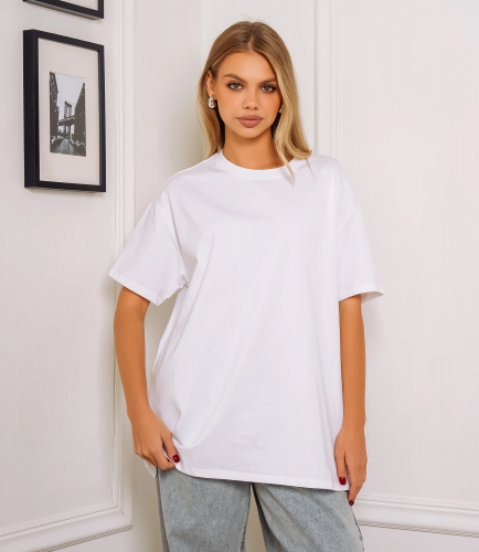 Эта футболка — прекрасный выбор для вашего магазина, предлагая стильный и универсальный дизайн, который станет отличным дополнением к гардеробу ваших клиентов. Свободный стиль, который обеспечивает комфорт и свободу движений. Широкие рукава и удлиненная форма делают футболку универсальной для различных нарядов. Классический круглый вырез горловины, который подходит практически всем типам фигур. Выполненная из 95% хлопка, 5% эластан, футболка обеспечивает отличное качество и приятные тактильные ощущения. Независимо от сезона, она станет любимым элементом в гардеробе ваших клиентов. На странице сайта доступна таблица размеров, что позволит вашим покупателям легко найти подходящий вариант. Установленная цена делает эту футболку доступной для широкой аудитории, что обеспечит вам высокий уровень продаж.