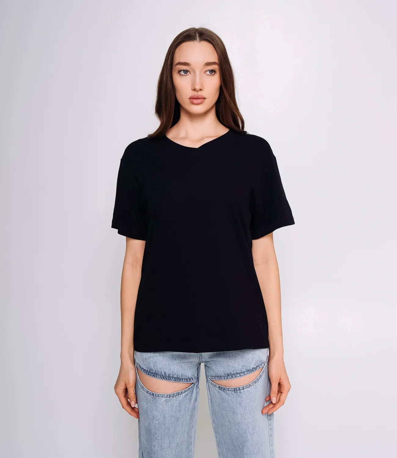 Эта футболка — прекрасный выбор для вашего магазина, предлагая стильный и универсальный дизайн, который станет отличным дополнением к гардеробу ваших клиентов. Свободный стиль, который обеспечивает комфорт и свободу движений. Широкие рукава делают футболку универсальной для различных нарядов. Простой и минималистичный дизайн без лишних деталей. Надежные швы, которые гарантируют долговечность изделия. Выполненная из 93% хлопка, 7% эластан, футболка обеспечивает отличное качество и приятные тактильные ощущения. Независимо от сезона, она станет любимым элементом в гардеробе ваших клиентов. На странице сайта доступна таблица размеров, что позволит вашим покупателям легко найти подходящий вариант. Установленная цена делает эту футболку доступной для широкой аудитории, что обеспечит вам высокий уровень продаж. Рост модели: 168, параметры: 85-63-92.