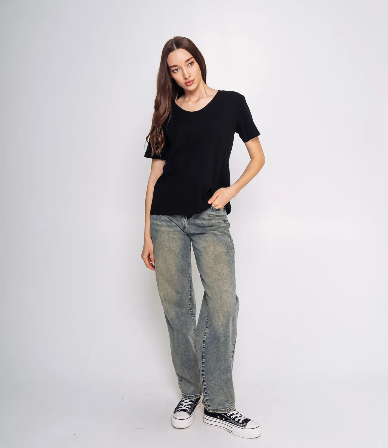 Футболка – это незаменимый элемент гардероба, который подчеркивает стиль и комфорт каждой женщины. Эта модель с свободным кроем и короткими рукавами обеспечивает невероятное удобство при носке. Округлый вырез горловины придает изделию классический и универсальный вид, что делает ее идеальной основой для любых образов. Изготовленная из 93% хлопка и 7% эластана, данная футболка мягкая и дышащая. Это делает её отличным выбором для повседневной одежды, особенно в теплое время года. Она легко комбинируется с различными стилями, позволяя вашим покупателям создавать стильные аутфиты как с джинсами, так и с юбками. Обратите внимание на ее качественный материал: даже после множества стирок футболка сохранит свою форму и яркость, становясь надежным спутником в гардеробе. Мы понимаем, как важно правильно выбрать размер, поэтому на нашем сайте представлена таблица с размерами, с помощью которой ваши клиенты смогут легко произвести необходимые замеры и уверенно выбрать подходящий вариант. Цена этой стильной футболки является доступной, что открывает отличные возможности для выгодной закупки. Не упустите шанс обновить ассортимент вашего магазина, предложив покупателям универсальную и актуальную футболку, которая позволит им чувствовать себя комфортно и стильно в любое время! Рост модели: 168, параметры: 85-63-92.