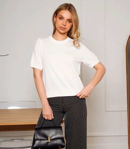 Эта футболка — прекрасный выбор для вашего магазина, предлагая стильный и универсальный дизайн, который станет отличным дополнением к гардеробу ваших клиентов. Вырез горловины круглый, невысокий, с аккуратной трикотажной планкой. Рукава короткие, доходят до середины предплечья, с широкой манжетой, на которой рисунок полос продолжается. Фасон свободный, слегка укороченный, линия низа заканчивается выше талии и оформлена плотной трикотажной резинкой для лёгкой сборки. Выполненная из 90% акрила, 10% шерсти, футболка обеспечивает отличное качество и приятные тактильные ощущения. Независимо от сезона, она станет любимым элементом в гардеробе ваших клиентов. На странице сайта доступна таблица размеров, что позволит вашим покупателям легко найти подходящий вариант. Установленная цена делает эту футболку доступной для широкой аудитории, что обеспечит вам высокий уровень продаж.