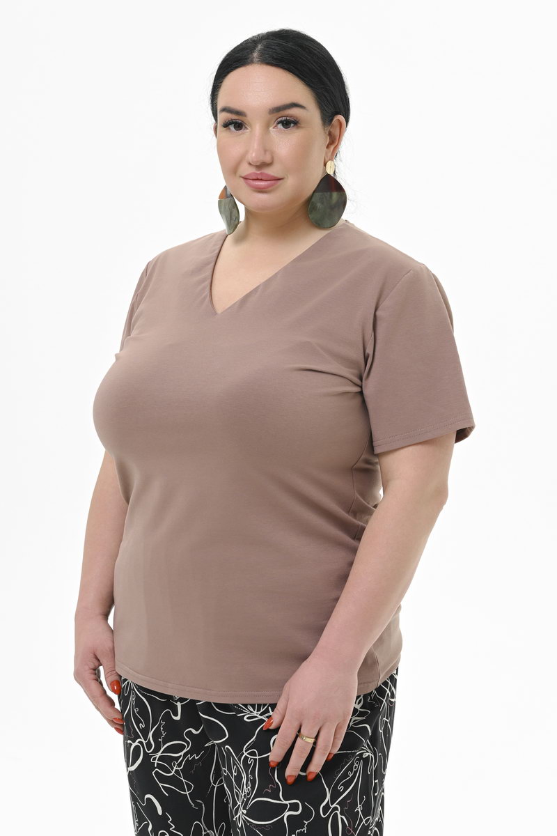 Футболка прилегающего силуэта с V-вырезом, из хлопка с эластаном, цвет "капучино"