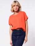 Футболка выполнена из эластичного премиального хлопка. Свободный силуэт и цельнокроеный рукав подходит для любого типа фигуры. На спинке изделия фирменный логотип бренда. Сочетай футболку с любимыми джинсами, брюками, юбками и шортами и создавай стильные аутфиты, в которых будет комфортно каждый день. оранжево-коралловый