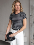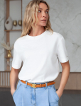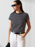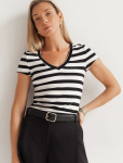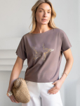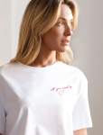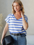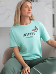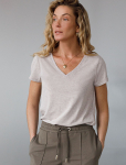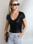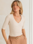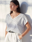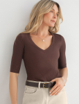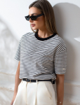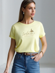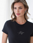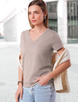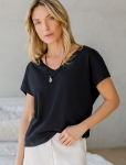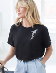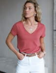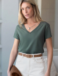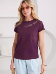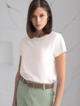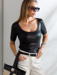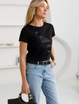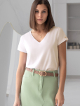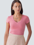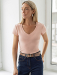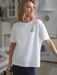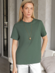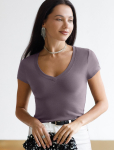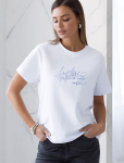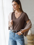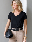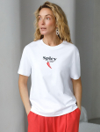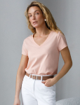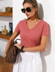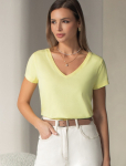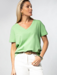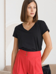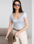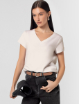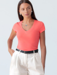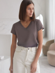 Футболка выполнена из эластичного премиального хлопка. V-вырез стройнит и вытягивает шею. Цельнокроеный рукав – красиво драпируется на плечах. На спинке изделия фирменный логотип бренда. Сочетай футболку с любимыми джинсами, брюками, юбками и шортами и создавай стильные аутфиты, в которых будет комфортно каждый день.