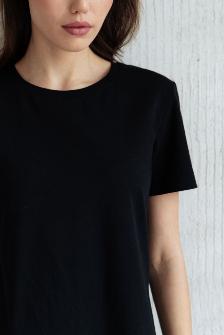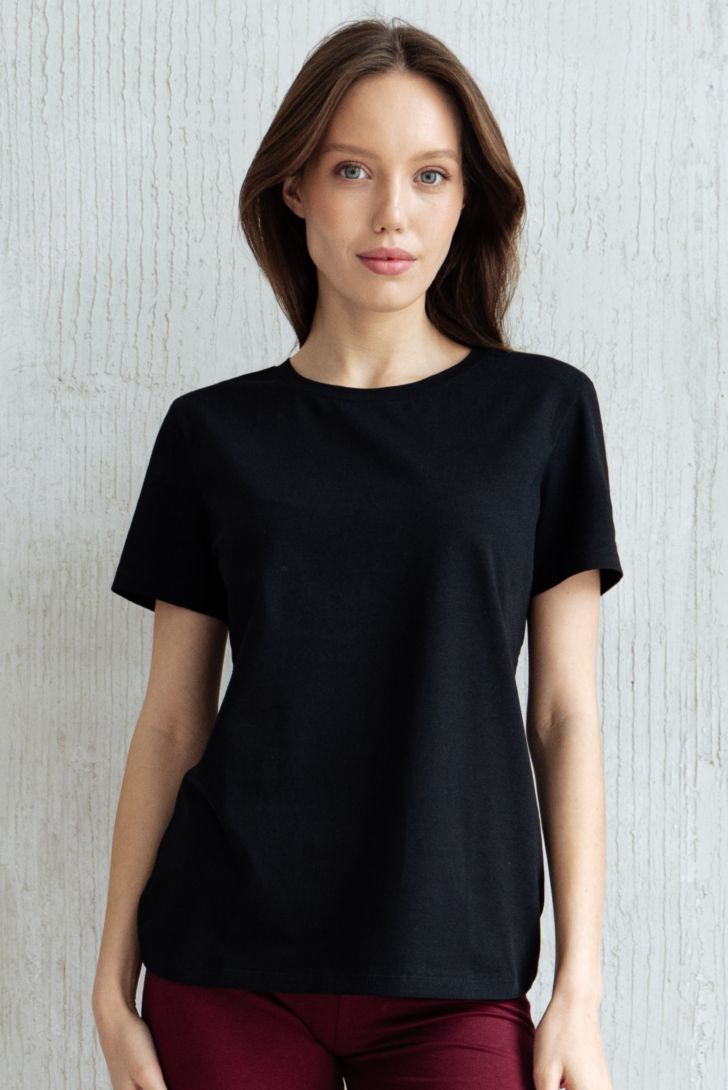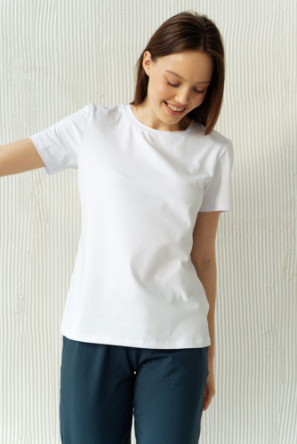 Футболка свободного прилегания с круглым вырезом горловины и коротким классическим рукавом. Удачно комбинируется с брюками и шортами данной коллекции, а так же с любыми поясными изделиями из личного гардероба. Идеально сочетается с жакетами и кардиганами. Хлопок 95%, Эластан 5%