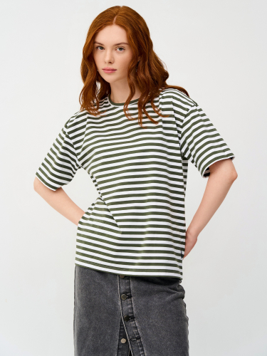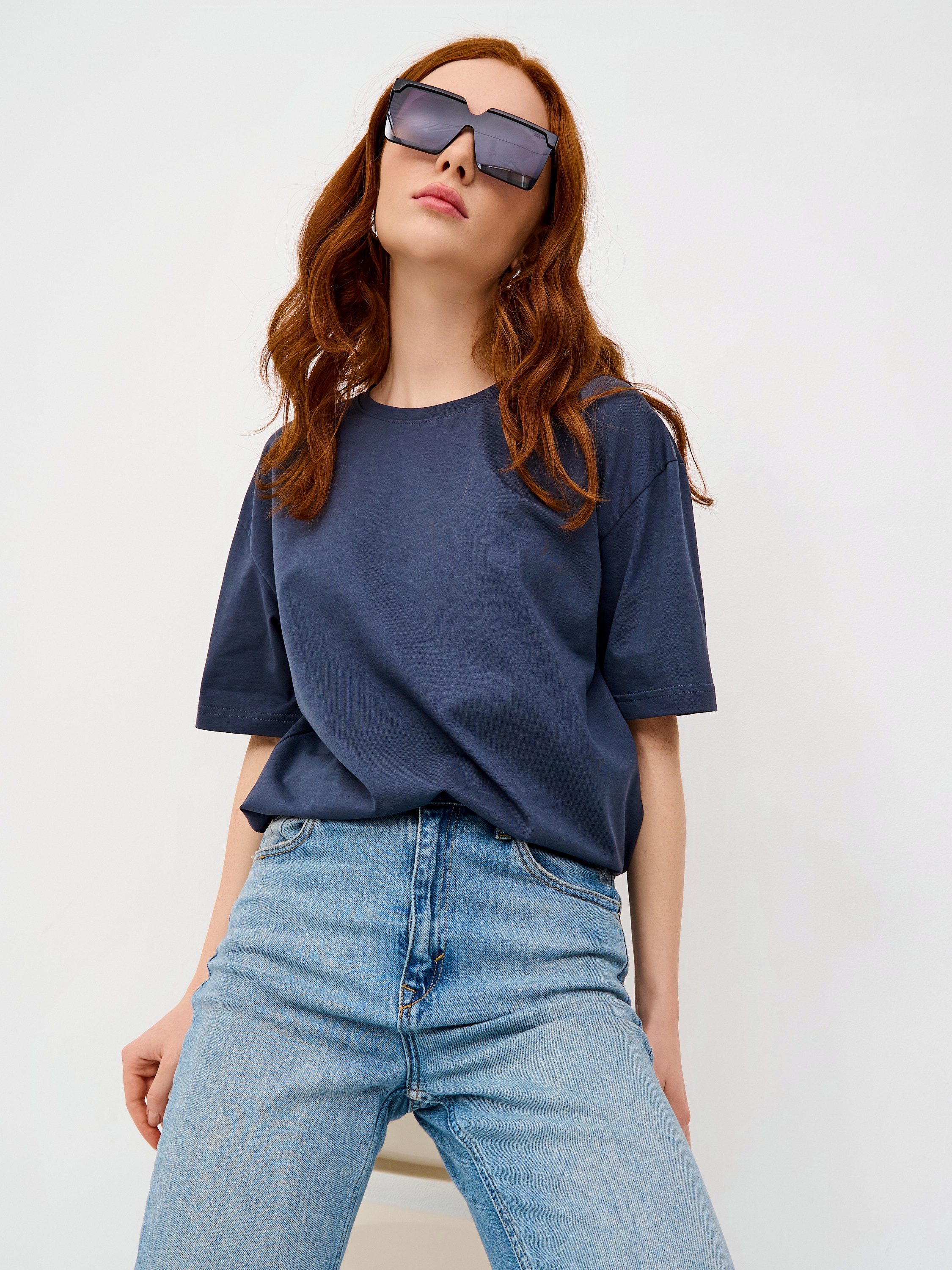 Женская футболка из кулирки с лайкрой, с втачным коротким рукавом. Горловина обработана бейкой из основной ткани. Низ изделия и низ рукава подвернуты и подшиты.