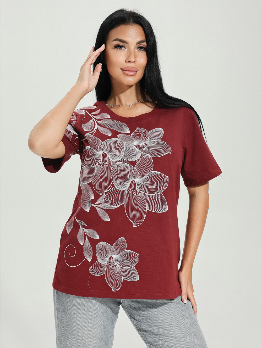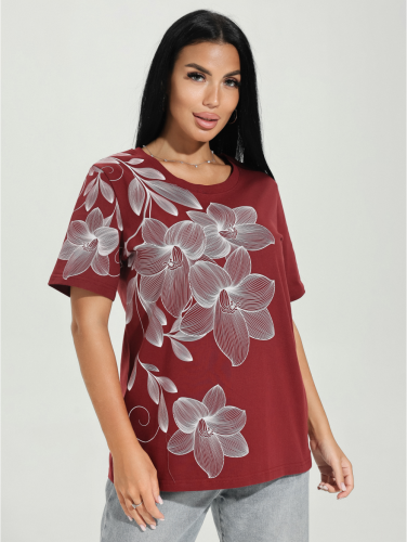 Футболка давно стала неотъемлемой частью базового гардероба многих женщин. Удобная и во многом универсальная вещь не только идеально дополняет комплекты одежды спортивного и повседневного стилей, но и отлично комбинируется со строгими, классическими нарядами. Представляем Вам нашу футболку ЛИРИКА, изготовленную из экологически чистого сырья, которое имеет высокую воздухопроницаемость, хорошо впитывает влагу. Нежный принт на рукаве и полочке добавит романтики в Ваш образ.