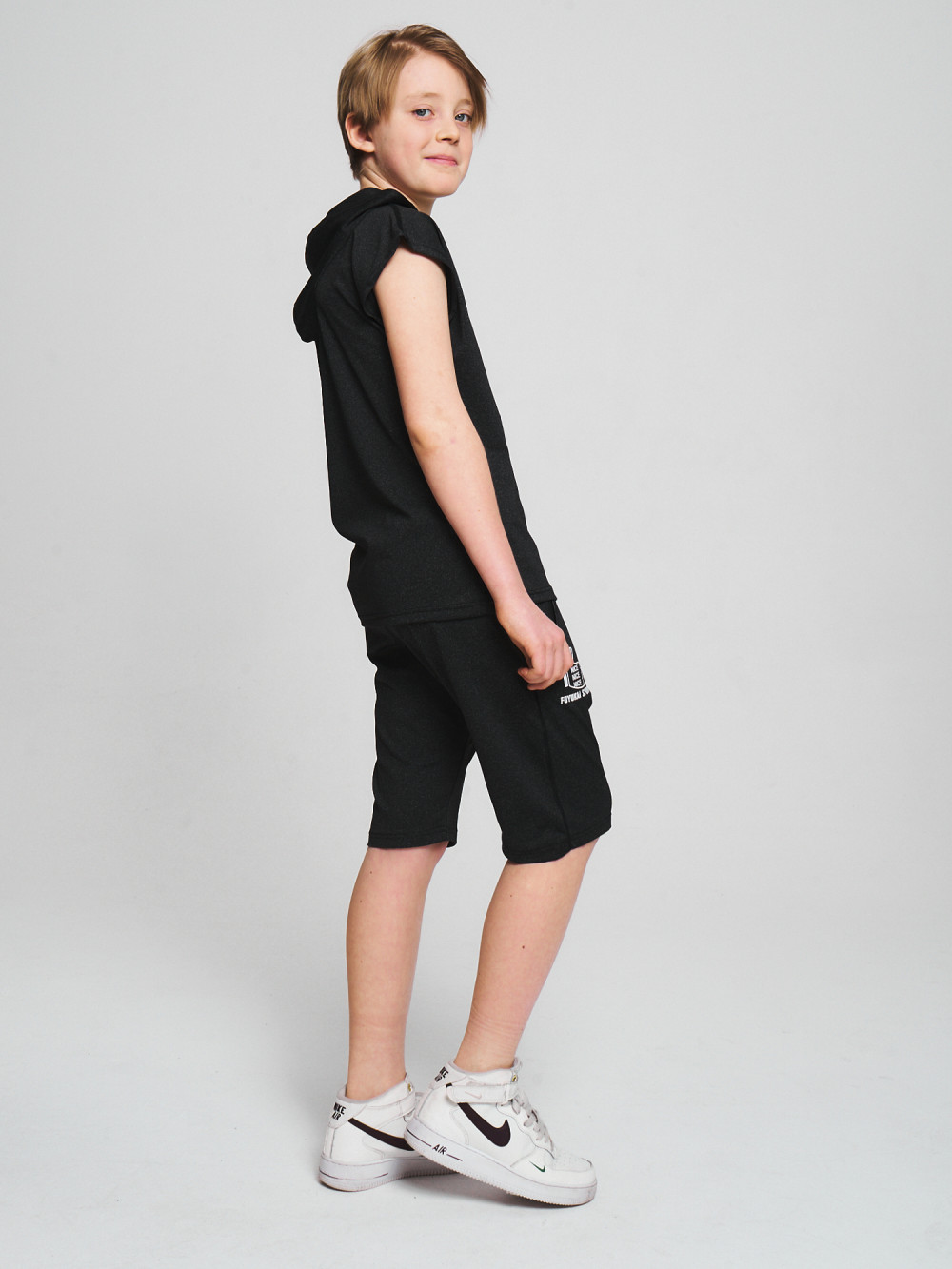 Оригинальный и уникальный летний костюм для мальчика состоит из футболки на молнии и эластичных шорт. На футболке есть капюшон, а рукава очень короткие и прямые. На груди и кармане шорт есть яркие печатные принты, которые добавляют стиль. Шорты имеют эластичный пояс, боковые карманы на молнии и регулируемый шнурок для индивидуальной посадки. Этот костюм подходит как для спорта, так и для повседневного использования, обеспечивая комфорт. Идеально отводит влагу при активном спорте: футболе, волейболе, беге, катании на велосипеде, самокате и т.д. Комплект сделан из экологически чистых, прочных материалов и будет радовать владельца долгое время. Ваш ребенок будет выглядеть уверенно и модно в этом костюме. Желаем продуктивной тренировки, приятного использования и отличного настроения. Носите с удовольствием! Удачных и ярких покупок!