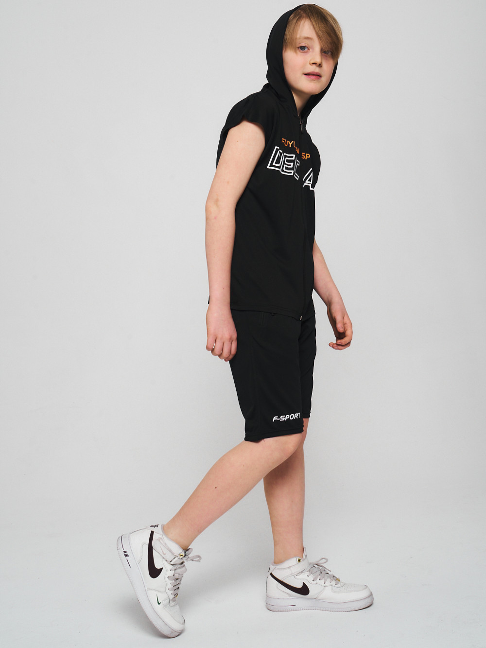 Оригинальный и уникальный летний костюм двойка повседневный спортивный для мальчика - отличный выбор для активных подростков, которые ценят стиль и комфорт! Этот спортивный комплект состоит из качественной футболки на молнии и комфортных эластичных шорт. У футболки есть капюшон для дополнительного комфорта, а очень короткие прямые рукава обеспечивают свободу движения. Застежка на молнию удобна в использовании, а яркий печатный принт добавляет стильный акцент на груди. Шорты снабжены эластичным поясом для комфортной посадки, а боковые карманы на молнии идеально подходят для хранения мелочей. На шортах размещена печатная надпись. Кроме того, регулируемый шнурок на талии позволяет адаптировать размер под индивидуальные особенности фигуры. Этот универсальный комплект идеально подходит для занятий спортом и повседневной носки, обеспечивает комфорт при любых обстоятельствах. Идеально отводит влагу при активном спорте: футболе, волейболе, беге, катании на велосипеде, самокате и.т.д. Созданный из экологичных и прочных материалов, этот костюм будет радовать своего обладателя на протяжении долгого времени и позволит вашему ребенку выглядеть модно и уверенно! Удачных покупок и положительных эмоций!