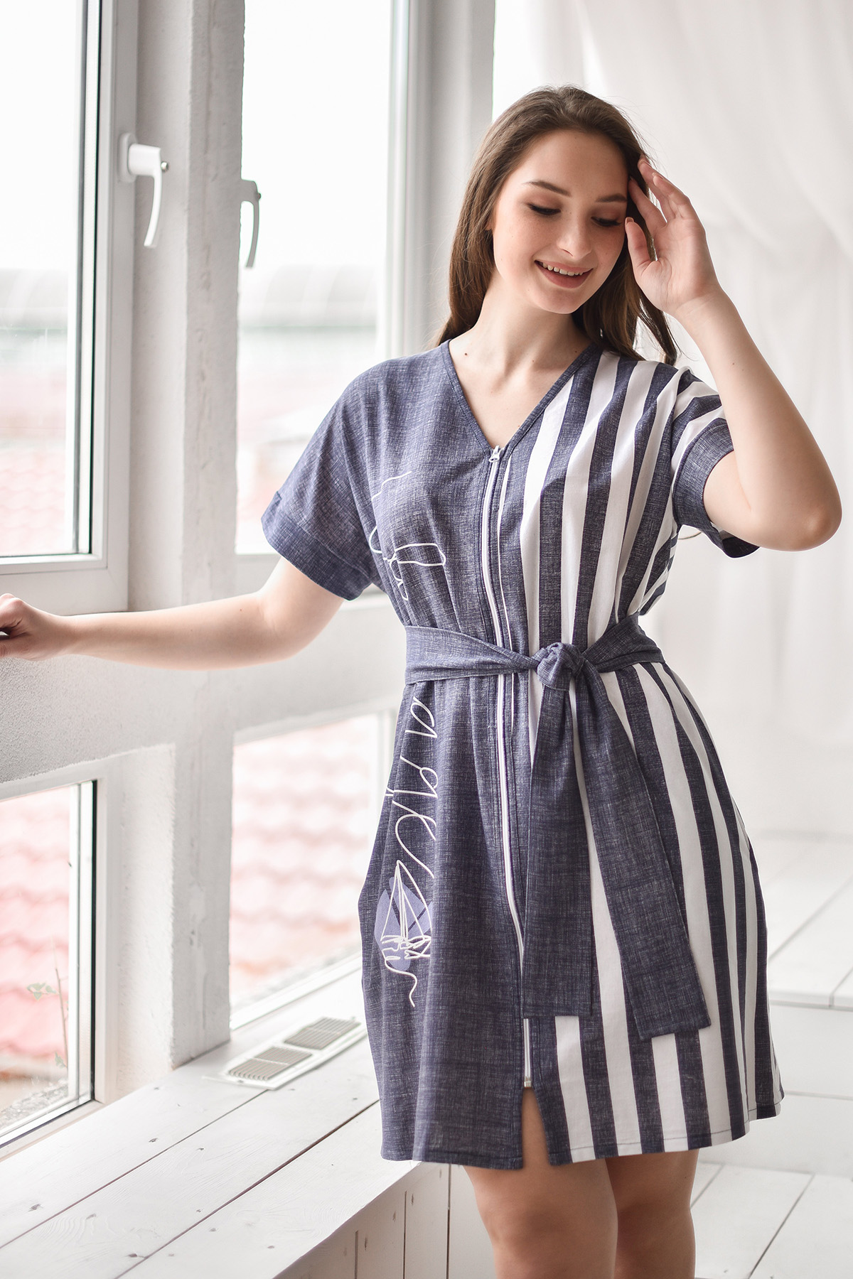 Халатик классный! Легкий, приятный. Состав: 60% хлопок, 40% пэ. В размер.
