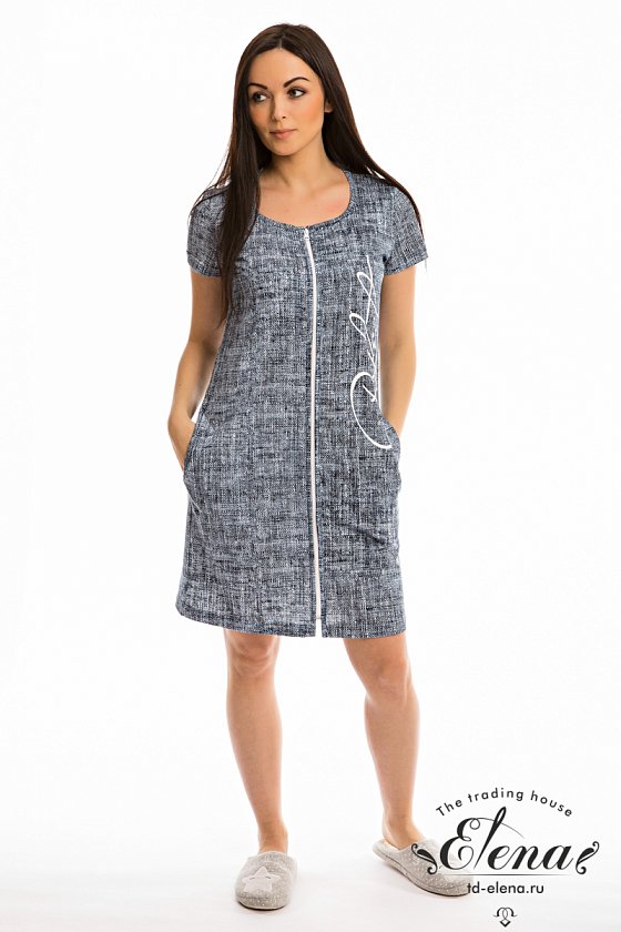 Женский халат на молнии с коротким рукавом выполнен из кулирки реактив. Молния и принт белого цвета спереди добавляют интересный акцент халату. Наличие карманов в боковых швах обеспечивает удобство для хранения мелких предметов.