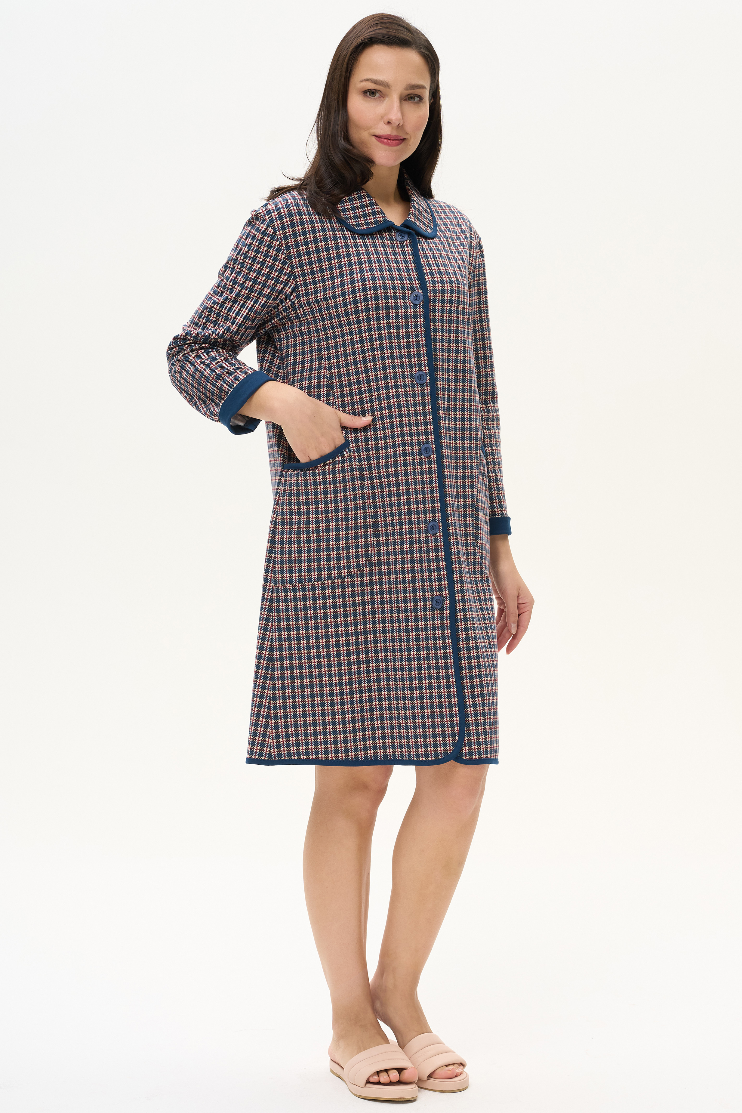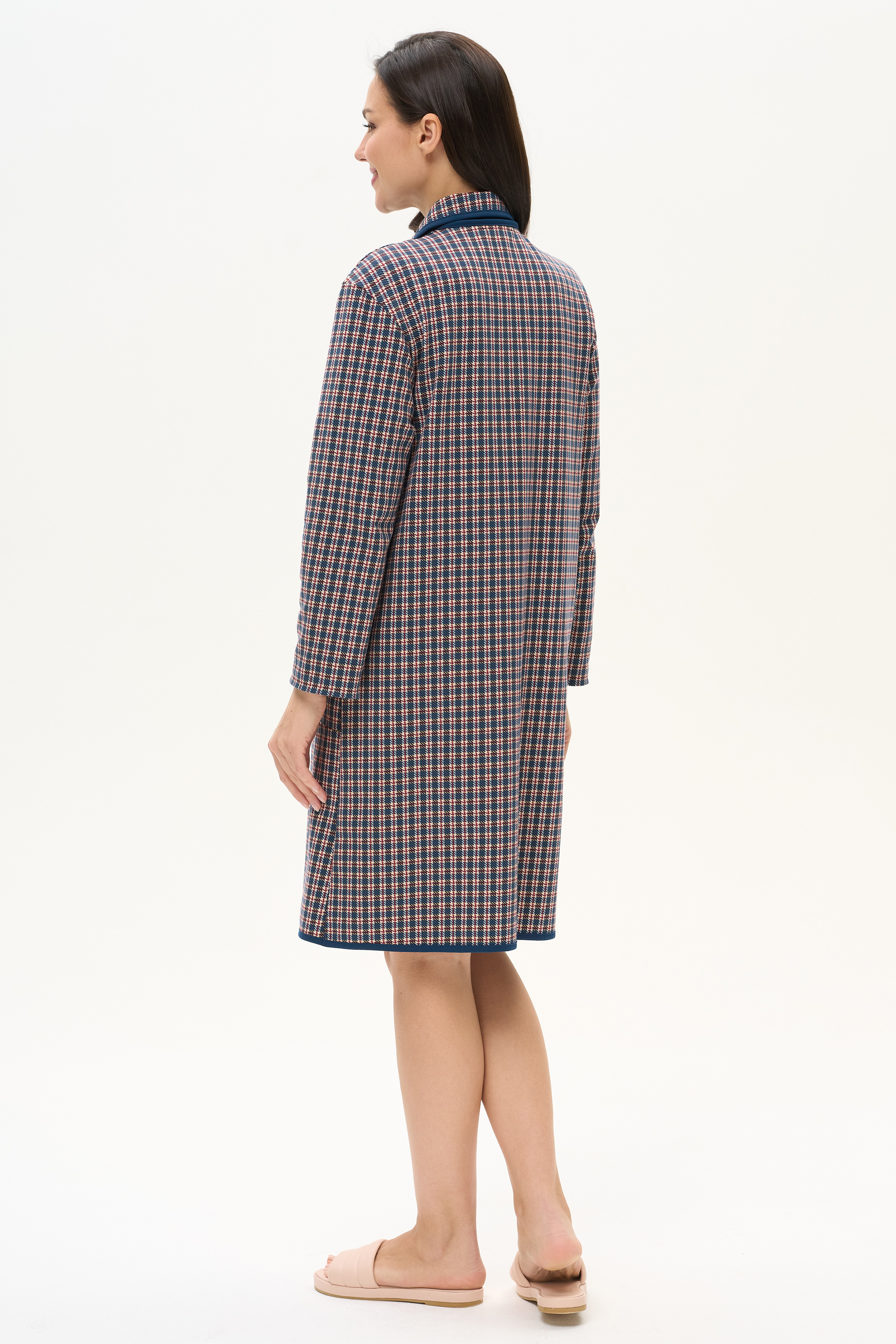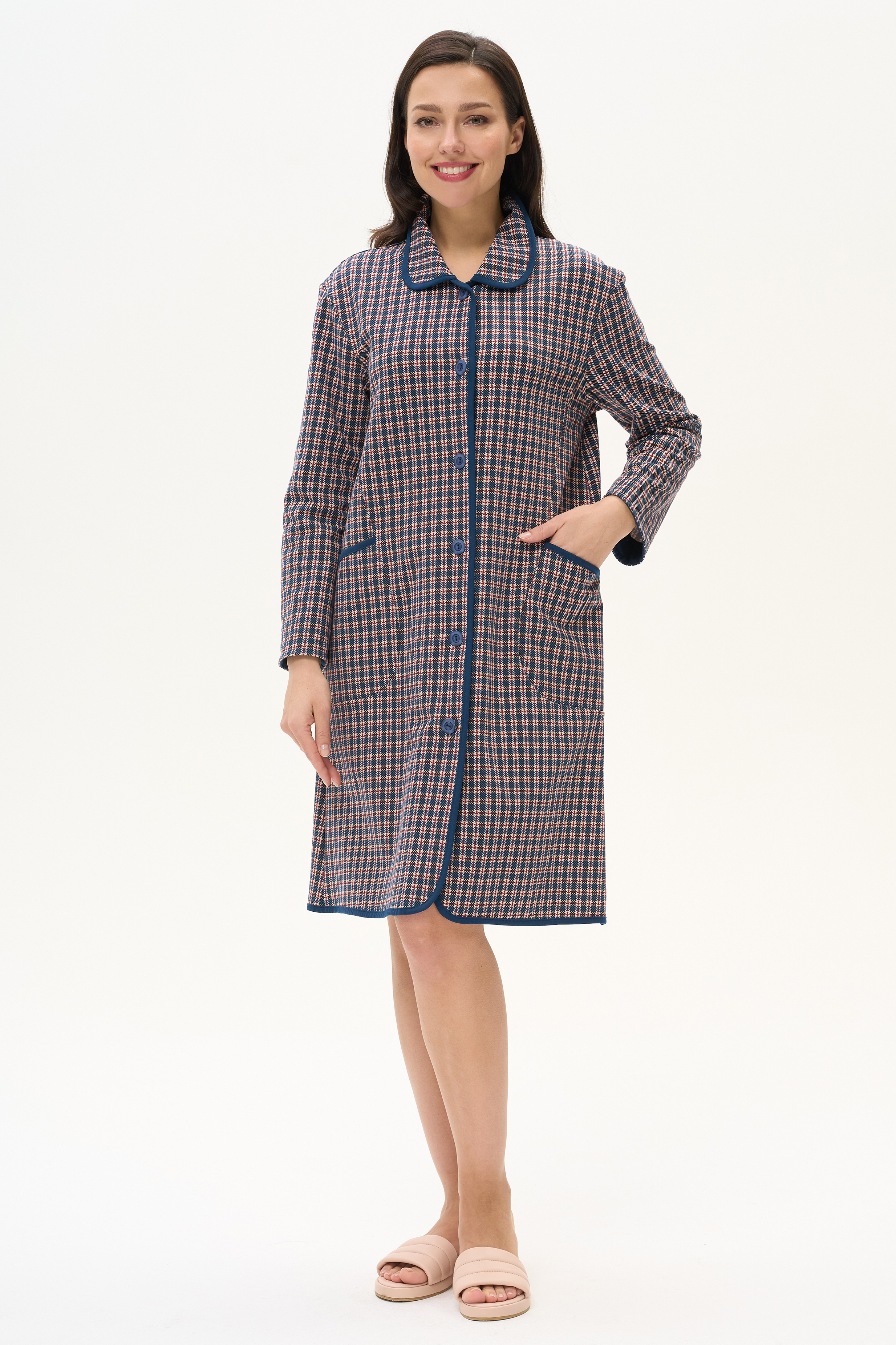 92% хлопок/ 8% эластан Тёплый халат из хлопкового трикотажного футера. Элегантный отложной воротник, длинные втачные рукава. Застёжка на пуговицы, накладные карманы. Рост модели на фото 170 см.