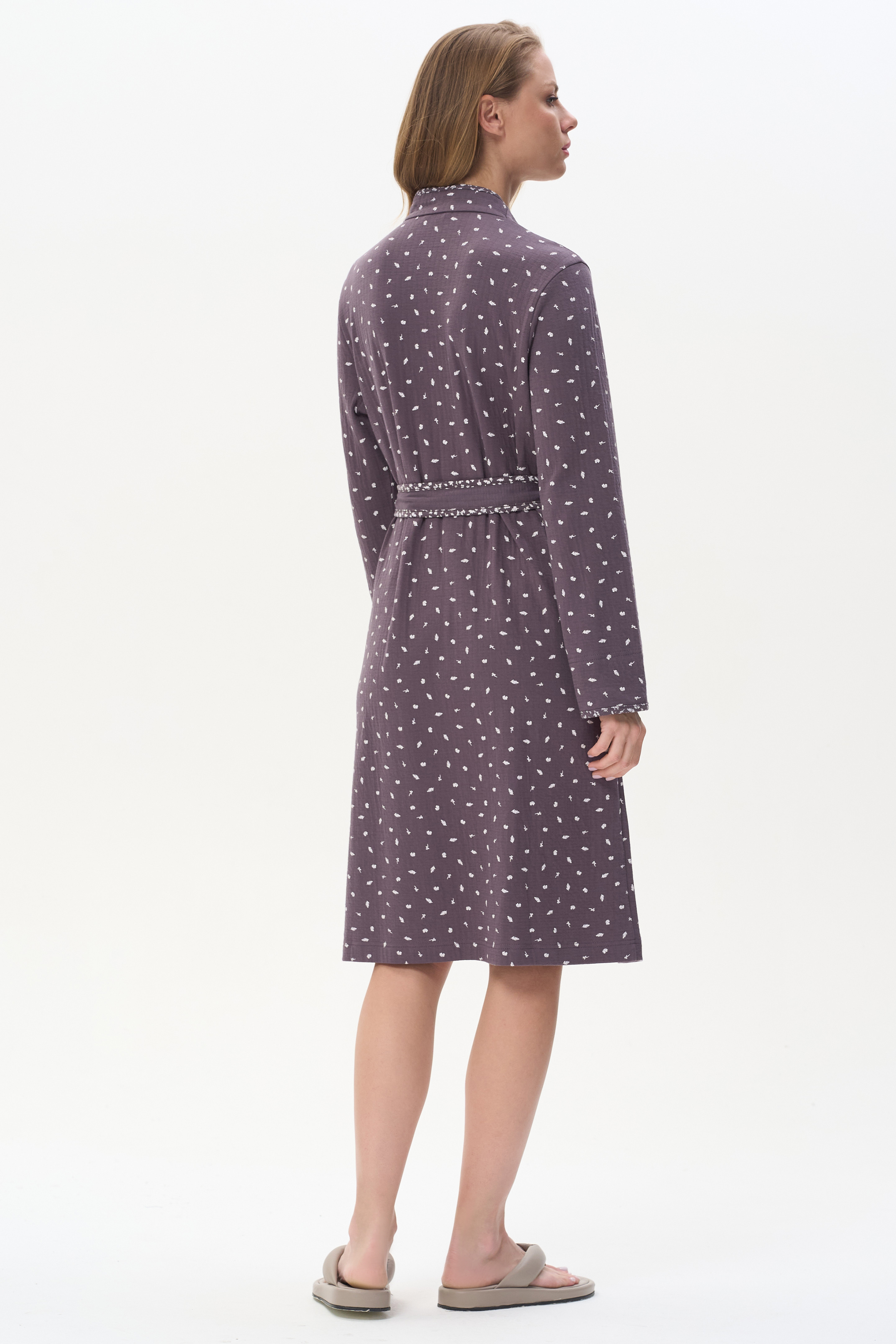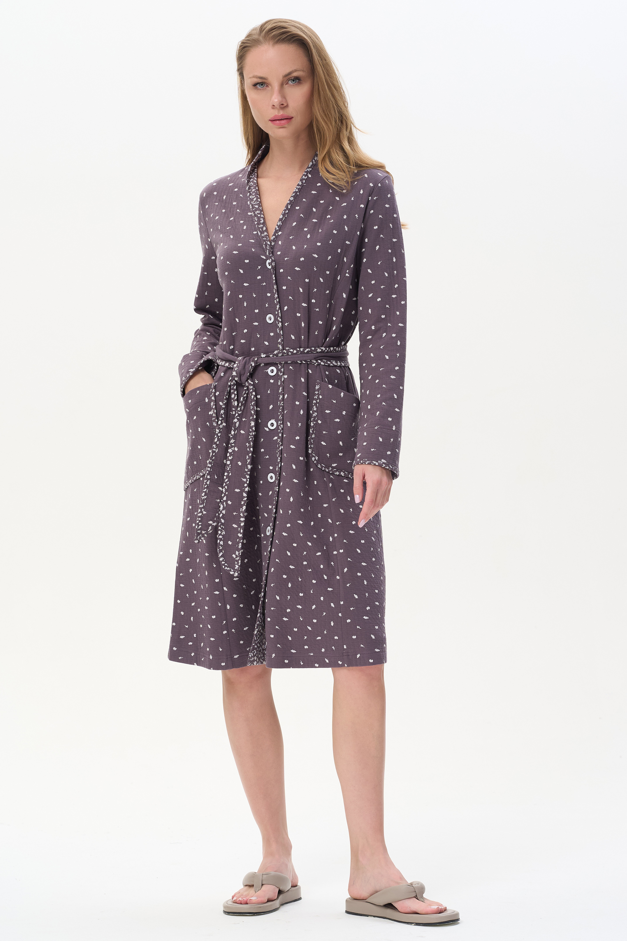 96% хлопок/ 4% полиэстер Халат с поясом из фактурного трикотажного полотна - интерлок.