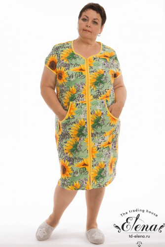 Женский халат — отличный выбор для домашнего отдыха. Он изготовлен из мягкой и приятной к телу ткани — кулирки реактив синего цвета с набивным рисунком.
