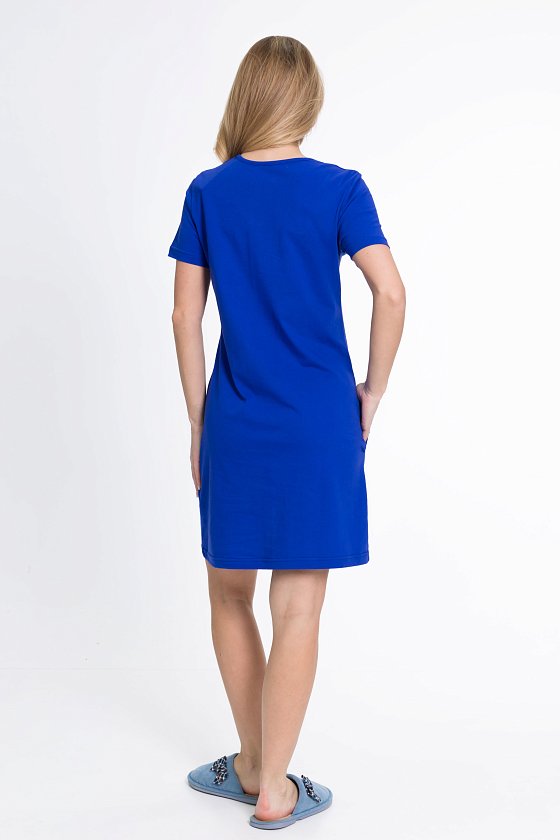 Халат из однотонной кулирки с коротким втачным рукавом.