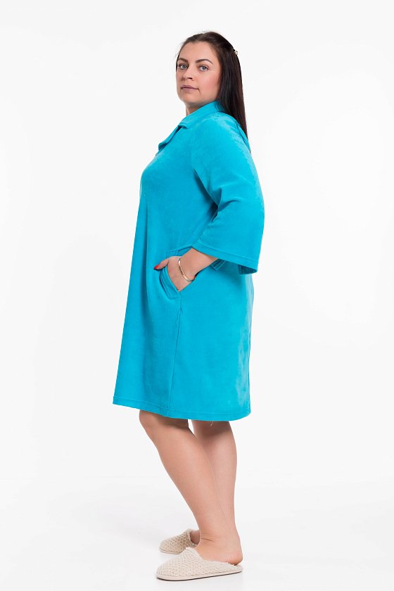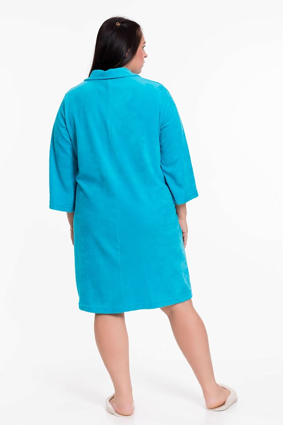 Женский халат — идеальный выбор для домашнего отдыха. Он выполнен из мягкого и приятного на ощупь однотонного велюра бирюзового цвета, который обеспечивает комфорт и тепло.