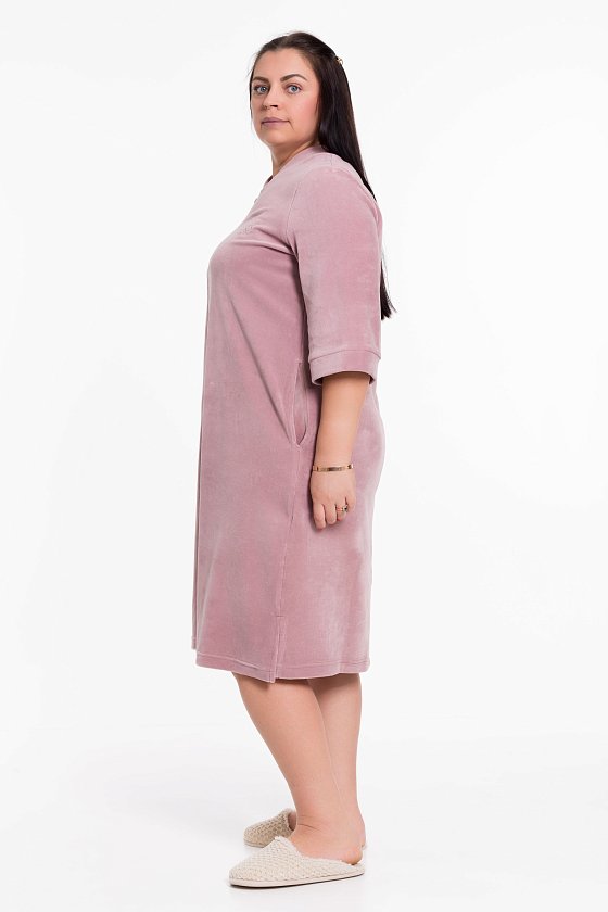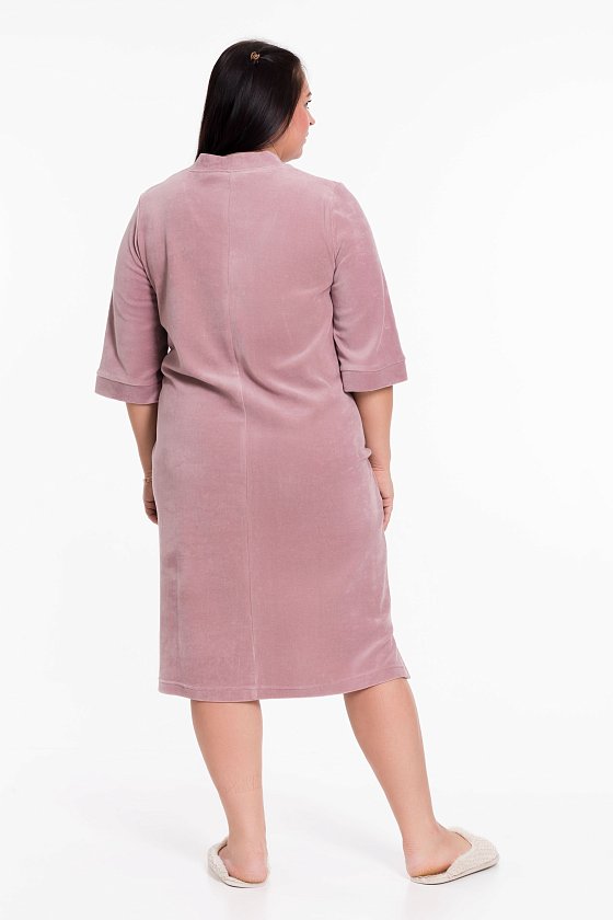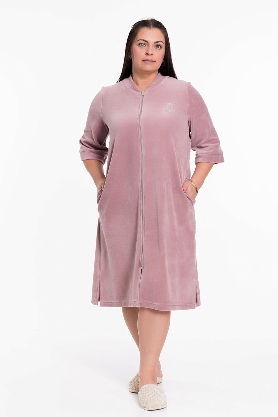 Женский халат — отличный выбор для домашнего отдыха. Он выполнен из мягкого и приятного на ощупь однотонного велюра благородного цвета сухая роза, который обеспечивает комфорт и тепло.
